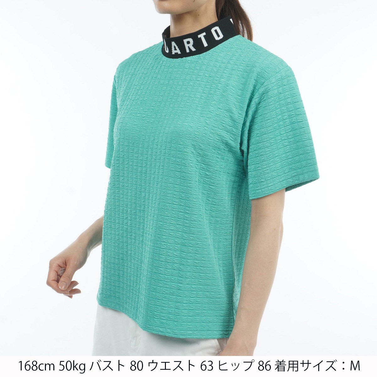 クアルトユナイテッド CUARTO UNITED 衿ロゴジャカードモックネック 半袖シャツ M グリーン レディス