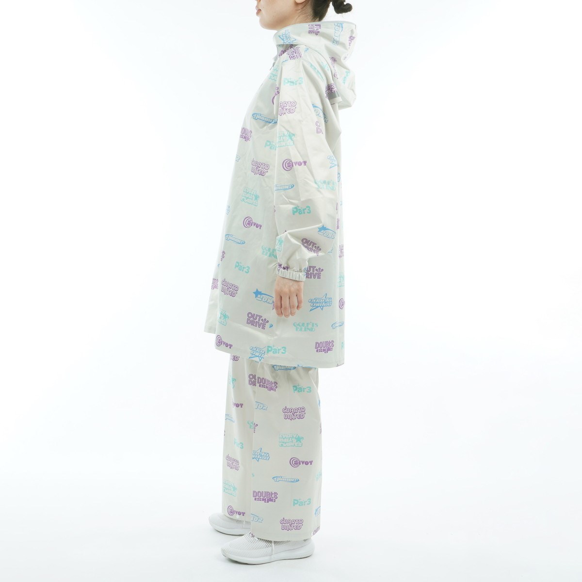 ワンピースとフットカバーが上下セットになったレインウェア。