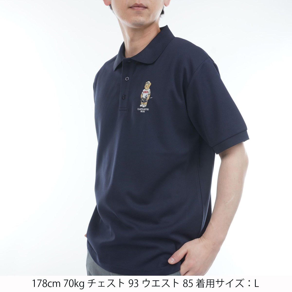 胸元に熊のワンポイント刺繍が大人可愛いポロシャツ。