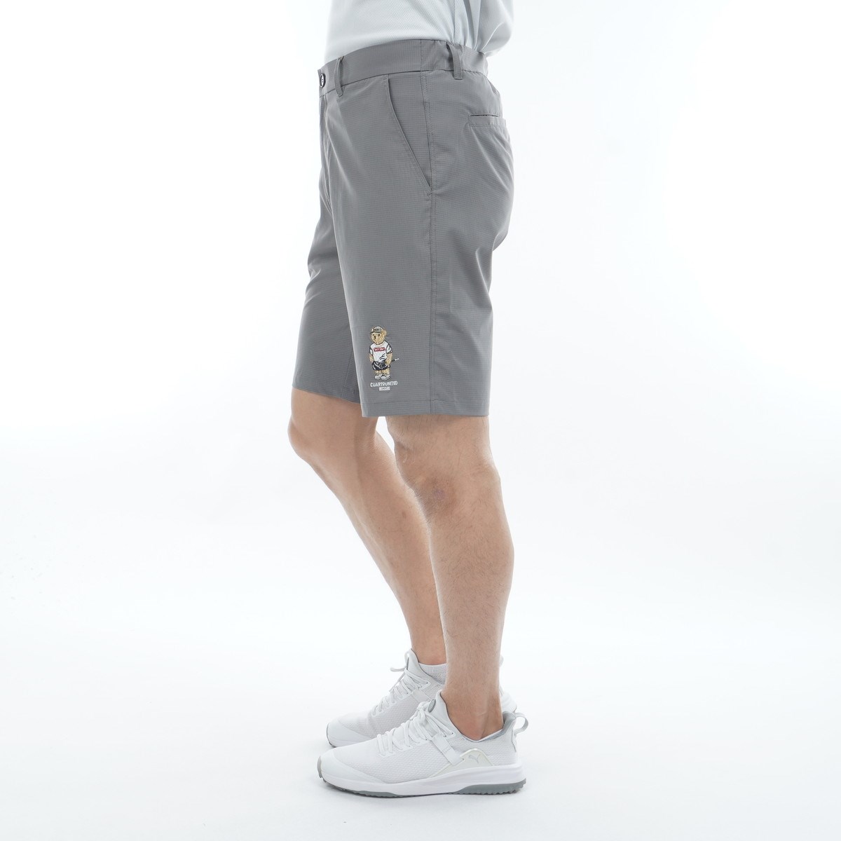 裾に熊のワンポイントモチーフがお洒落なハーフパンツ。
