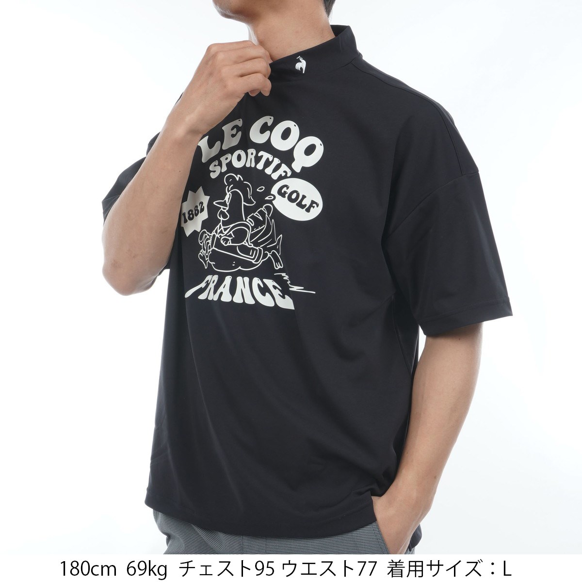 ルコックスポルティフ ゴルフ Le coq sportif GOLF GDO限定 ストレッチ ルースターグラフィックモックネック半袖シャツ LL ブラック 00