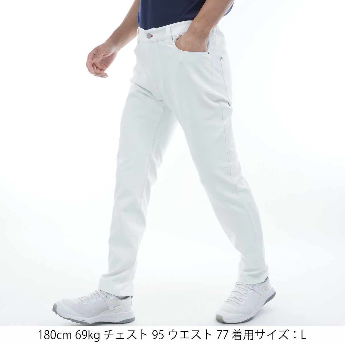 2WAYストレッチによる快適な履き心地と、セラミック粒子によるフルダル糸が光を遮り、白色でも透けにくい素材を用いたパンツ。