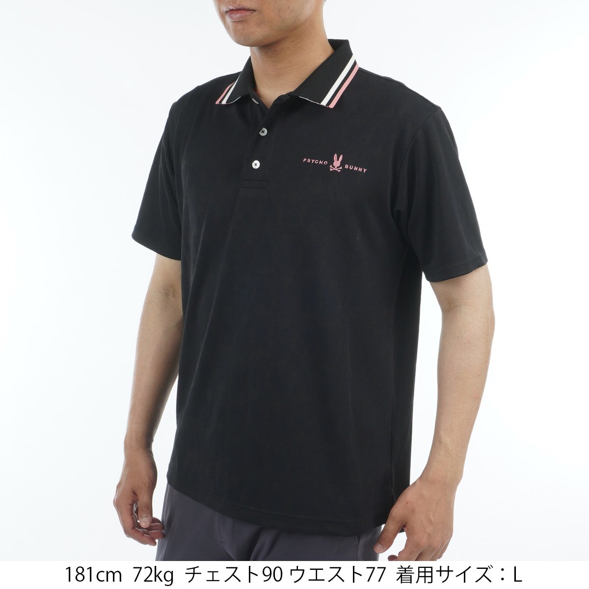 サイコバニー PSYCHO BUNNY シルエットバニージャガード 半袖ポロシャツ M ブラック
