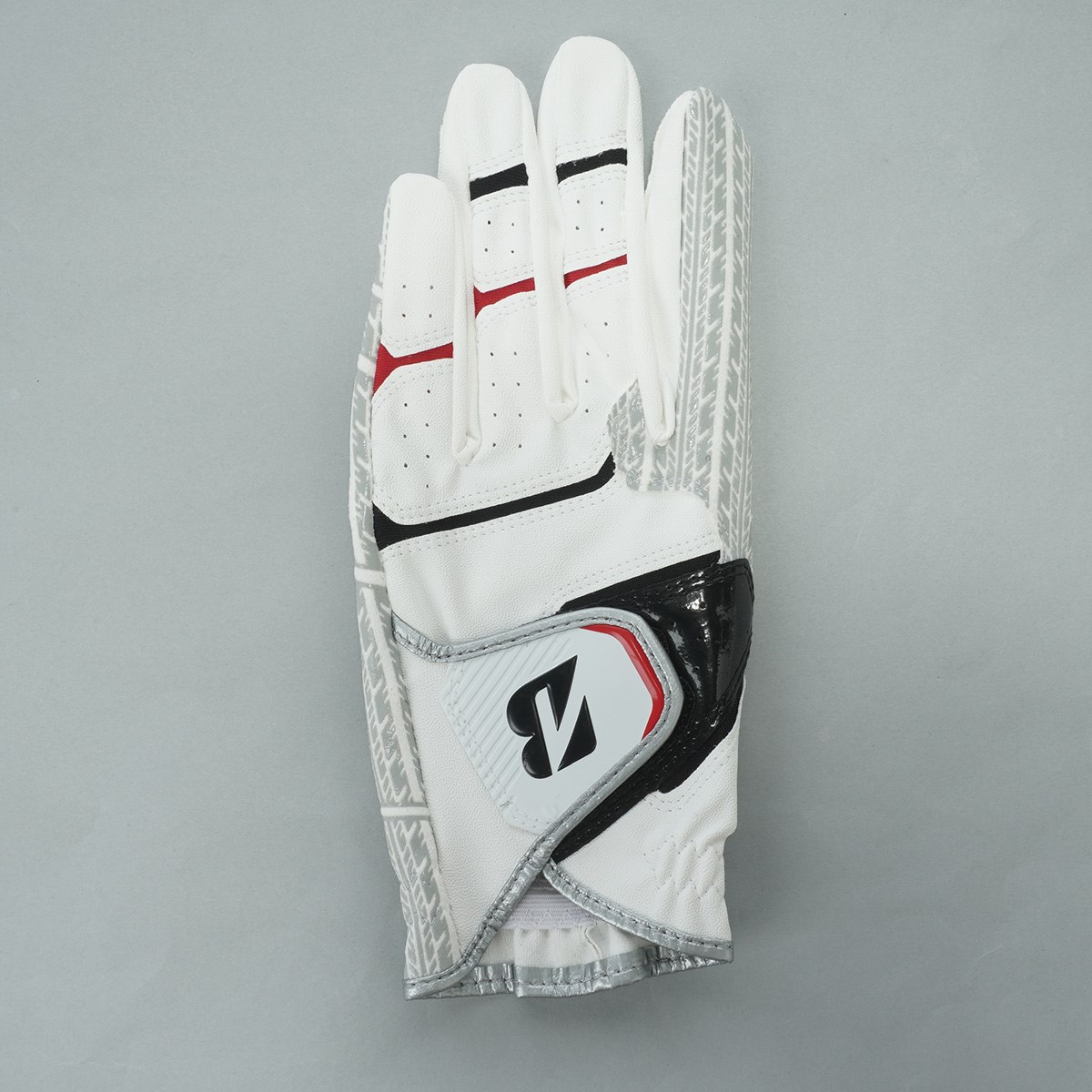 ●ホールド感を高めるベルト形状:甲側アジャスト部と手のひら側素材を直接縫製することで、包み込まれるようなフィット感を実現。