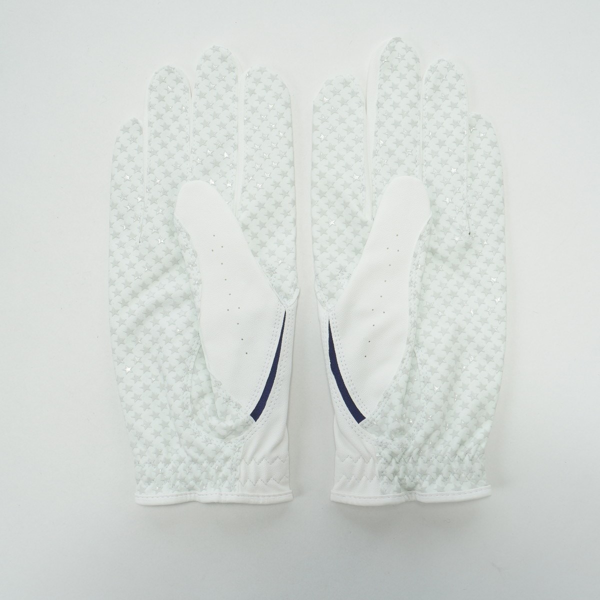 ●星柄「スリップレスバイト」加工:手のひら側に星柄シリコーンプリントを施し、密着性を高めることでスイング時のグローブとグリップ部のズレを抑制。