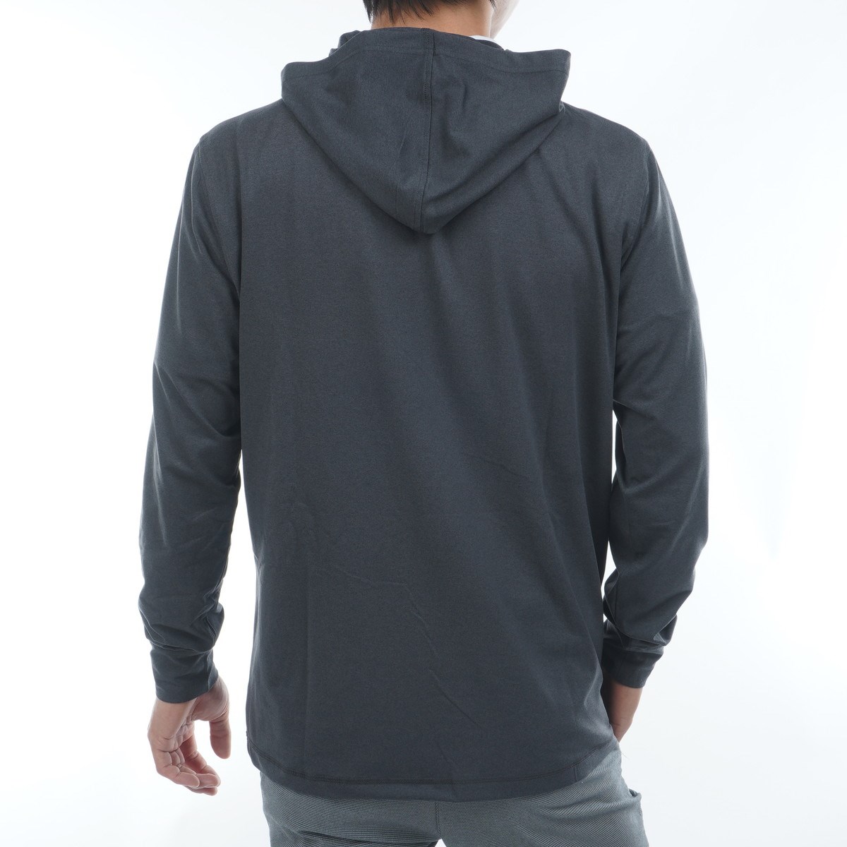ちょっと肌寒い朝晩など、さらっと羽織れるような薄手のフードパーカーです。
