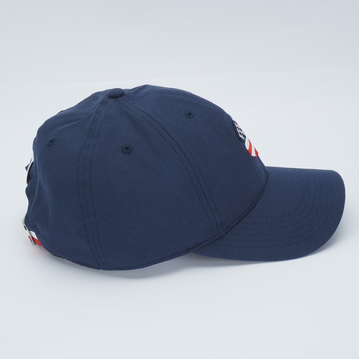 人気の高いネイビーカラーのハットに星条旗カラーを取り入れたバックベルトもこのキャップの特徴。