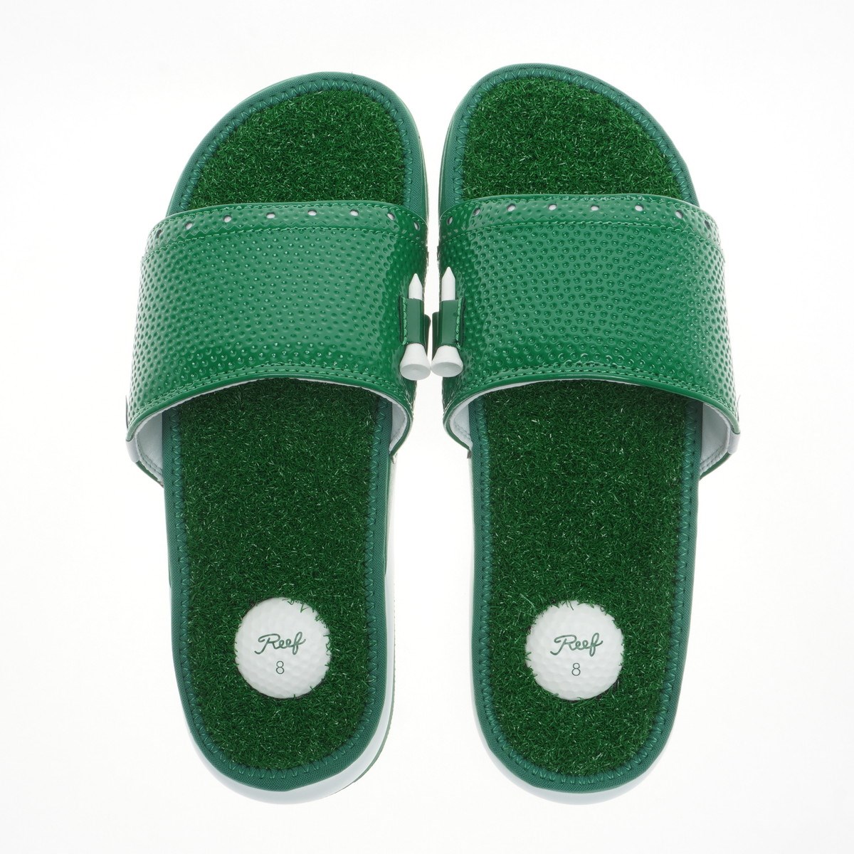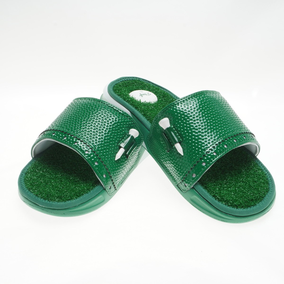 人工芝を全面にあしらい、かかと部分はゴルフボールデザイン。