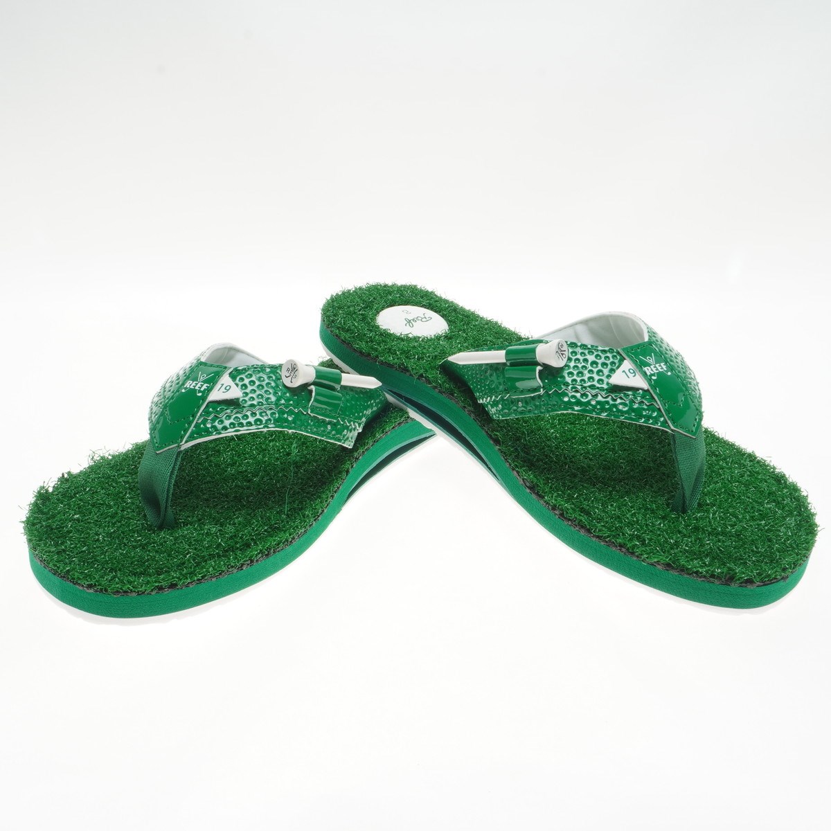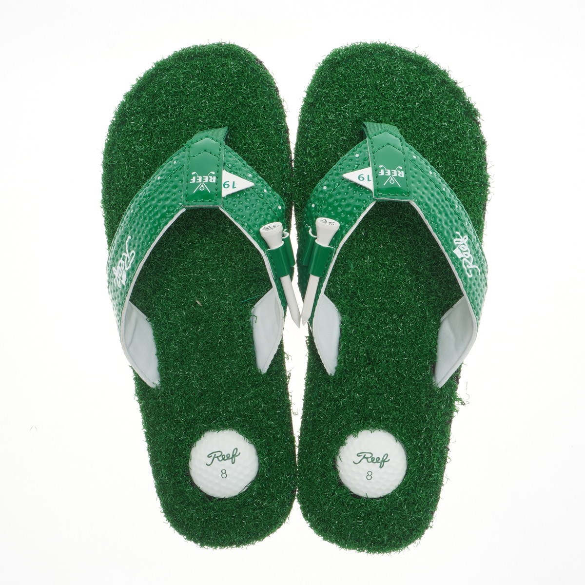 人工芝を全面にあしらい、かかと部分はゴルフボールデザイン。