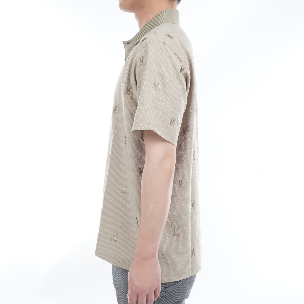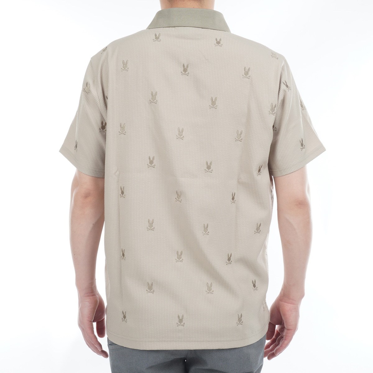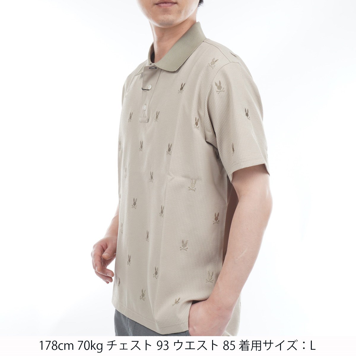 サイコバニー PSYCHO BUNNY GOLF シアサッカー ストライプロゴパターン ストレッチ 半袖ポロシャツ M ベージュ