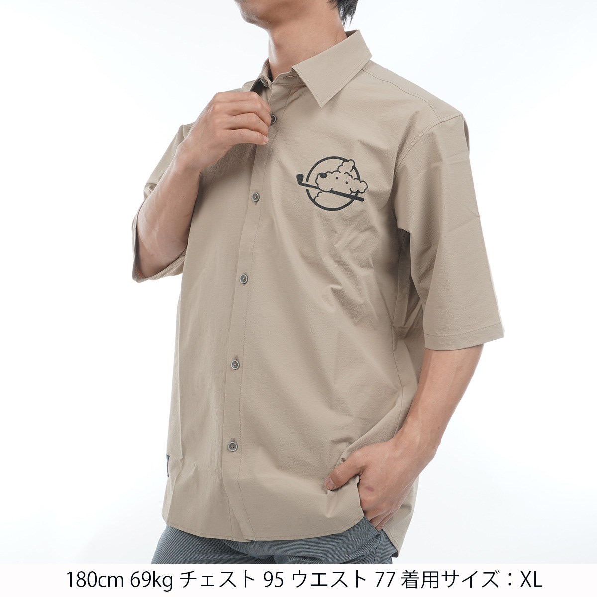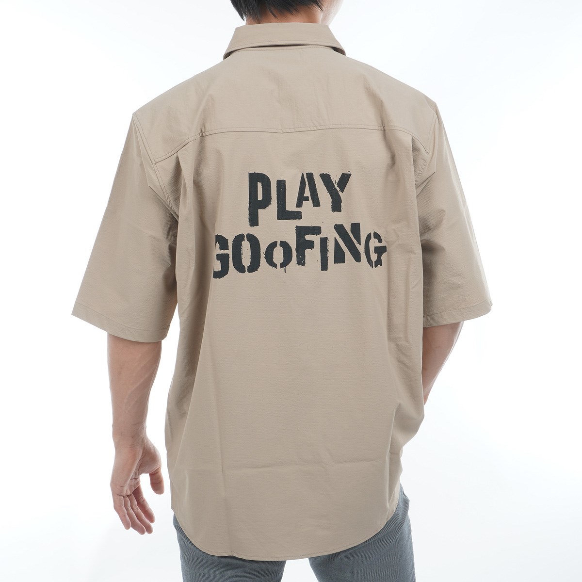 プレイグーフィング PLAYGOOFING ストレッチ 半袖カラーシャツ L ベージュ