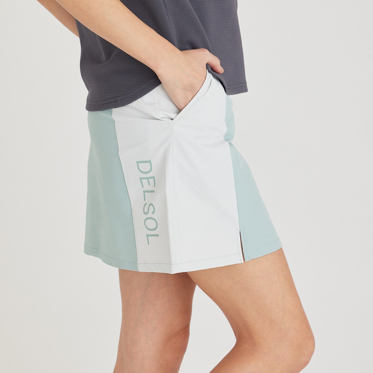 デルソルゴルフ DELSOL GOLF アンダーパンツ一体型 ストレッチバイカラースカート L ライトグリーン レディス