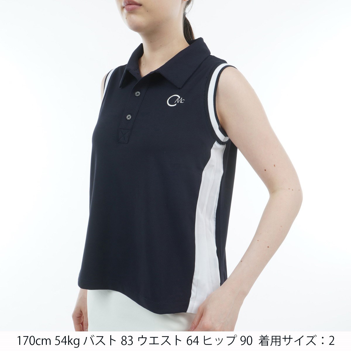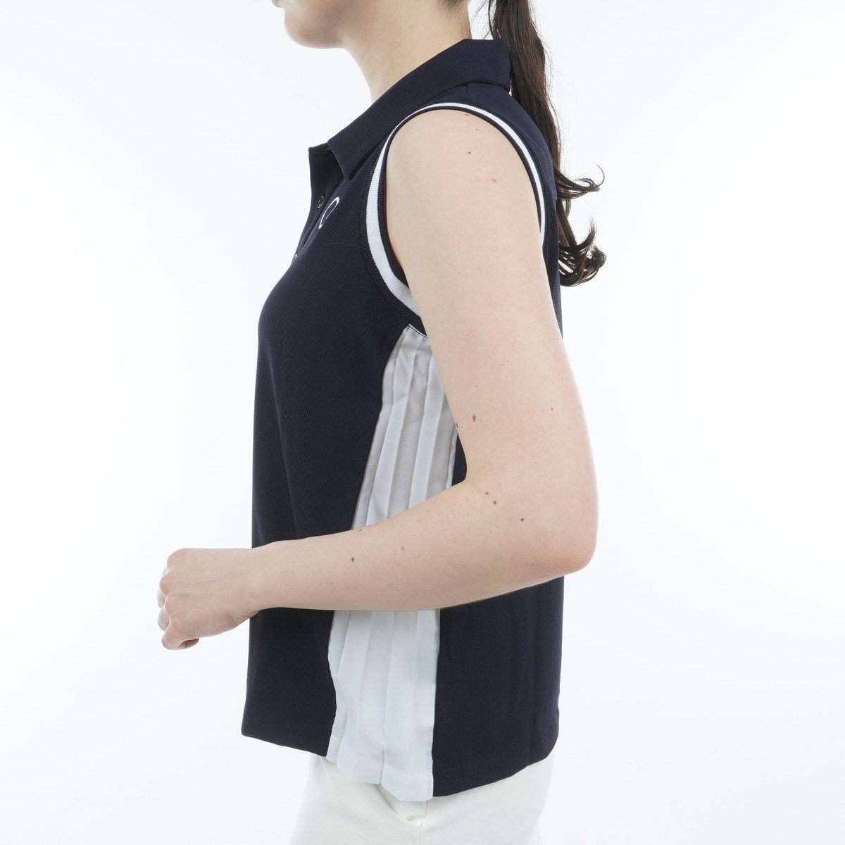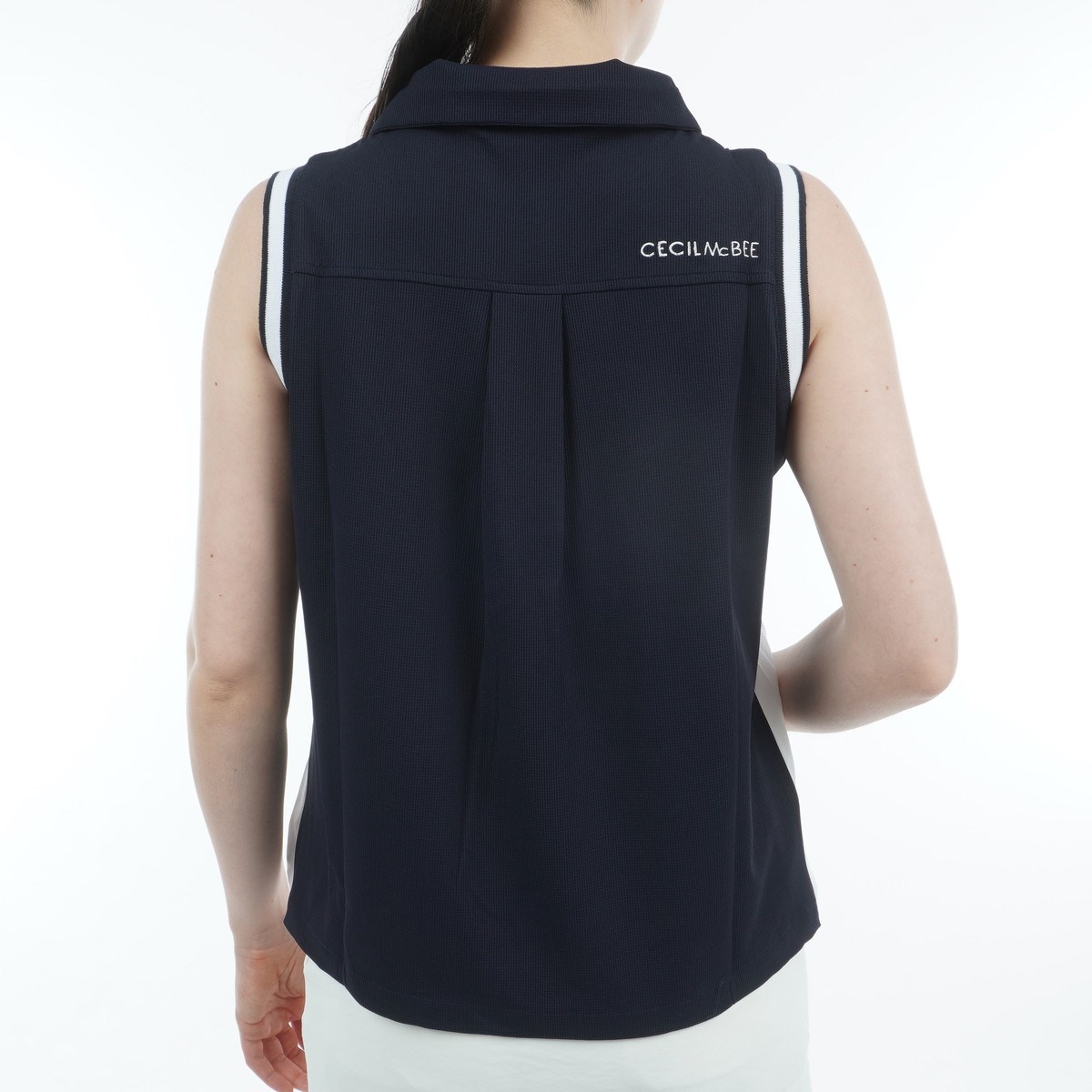セシルマクビー グリーン CECIL McBEE green サイドプリーツ ノースリーブポロシャツ 1 ネイビー レディス