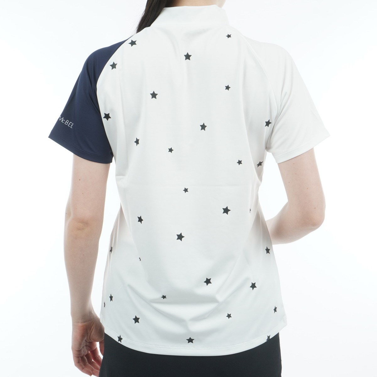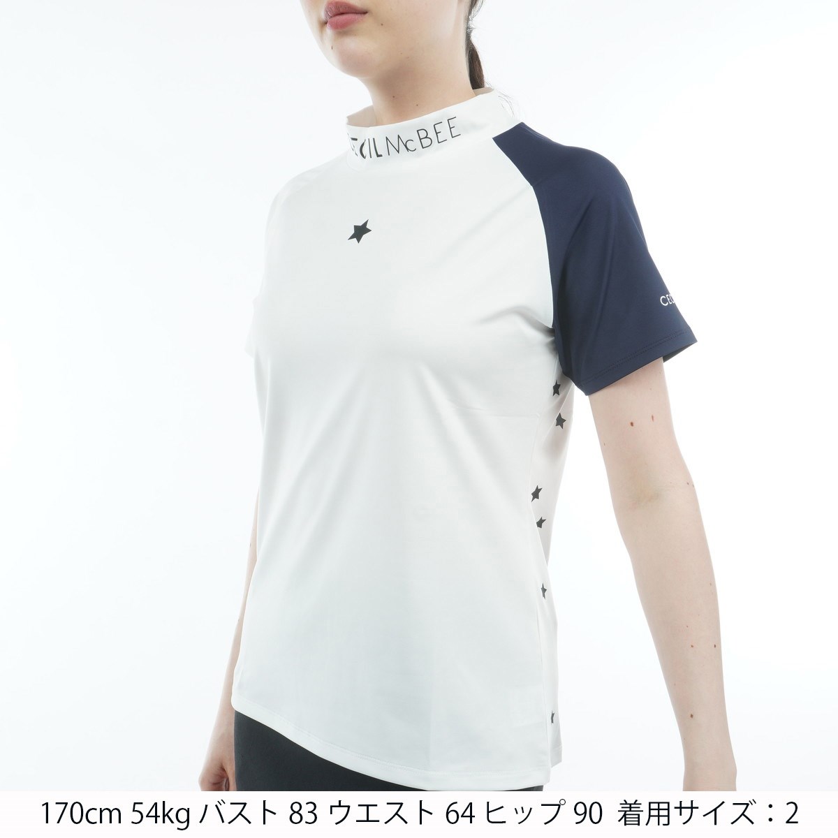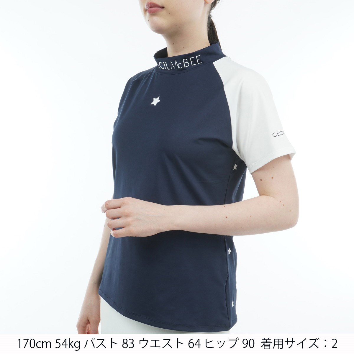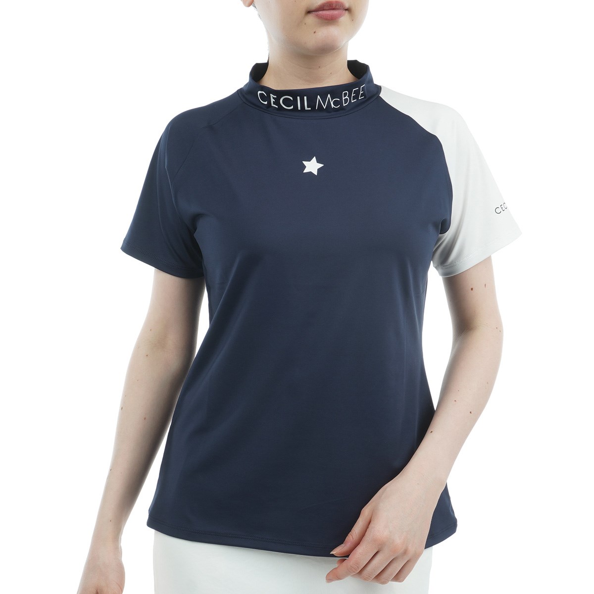 セシルマクビー グリーン CECIL McBEE green スターバイカラー ラグランモックネック半袖シャツ 1 ホワイト レディス