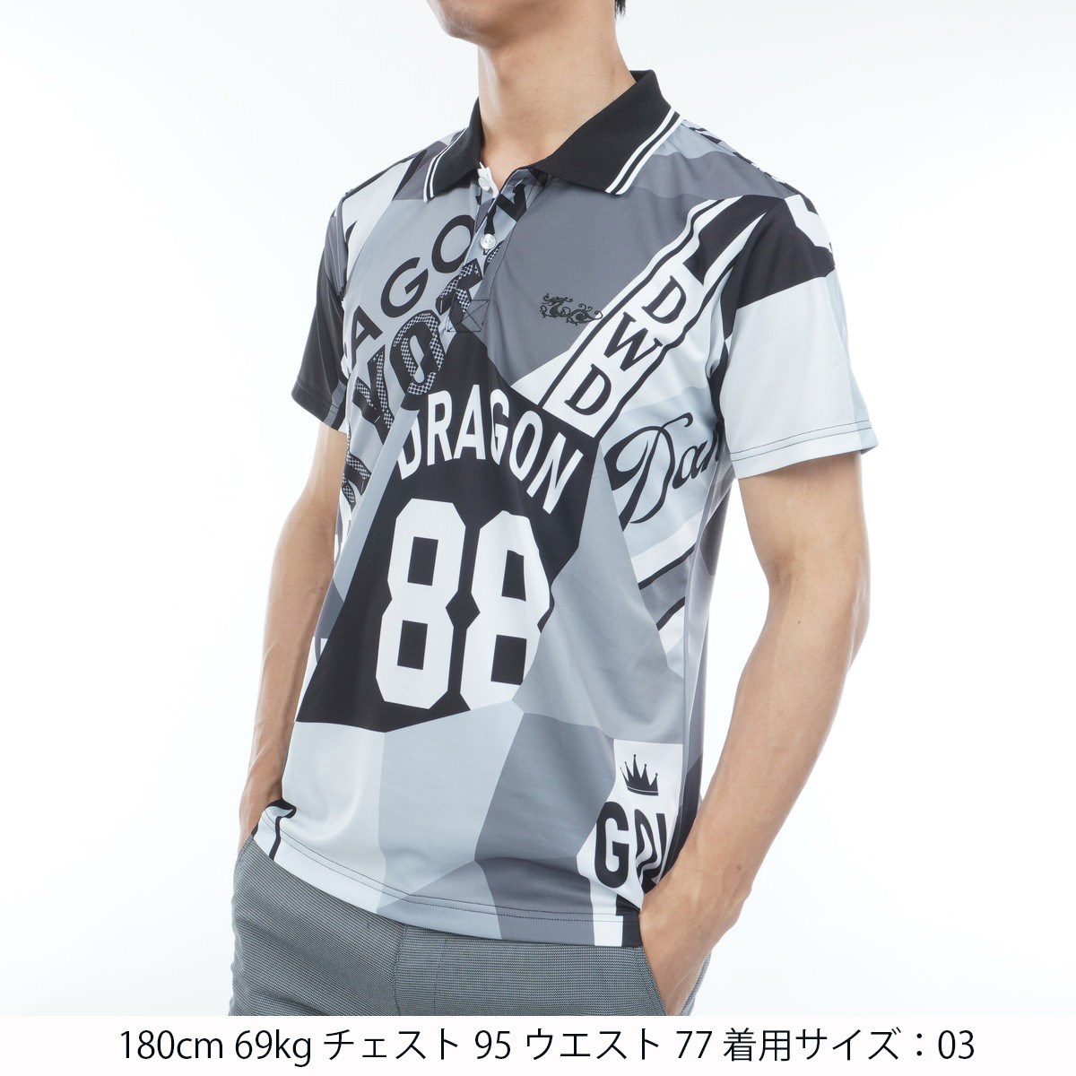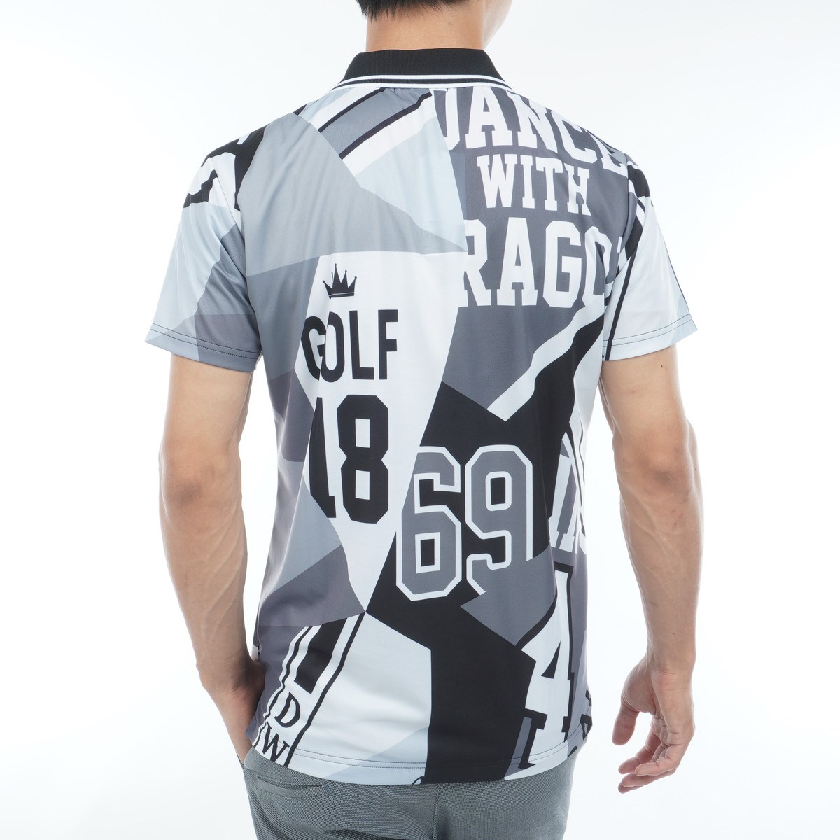 ダンスウィズドラゴン Dance With Dragon ストレッチ ブローグコアプリント 半袖ポロシャツ 03 ブラック/マルチ 098