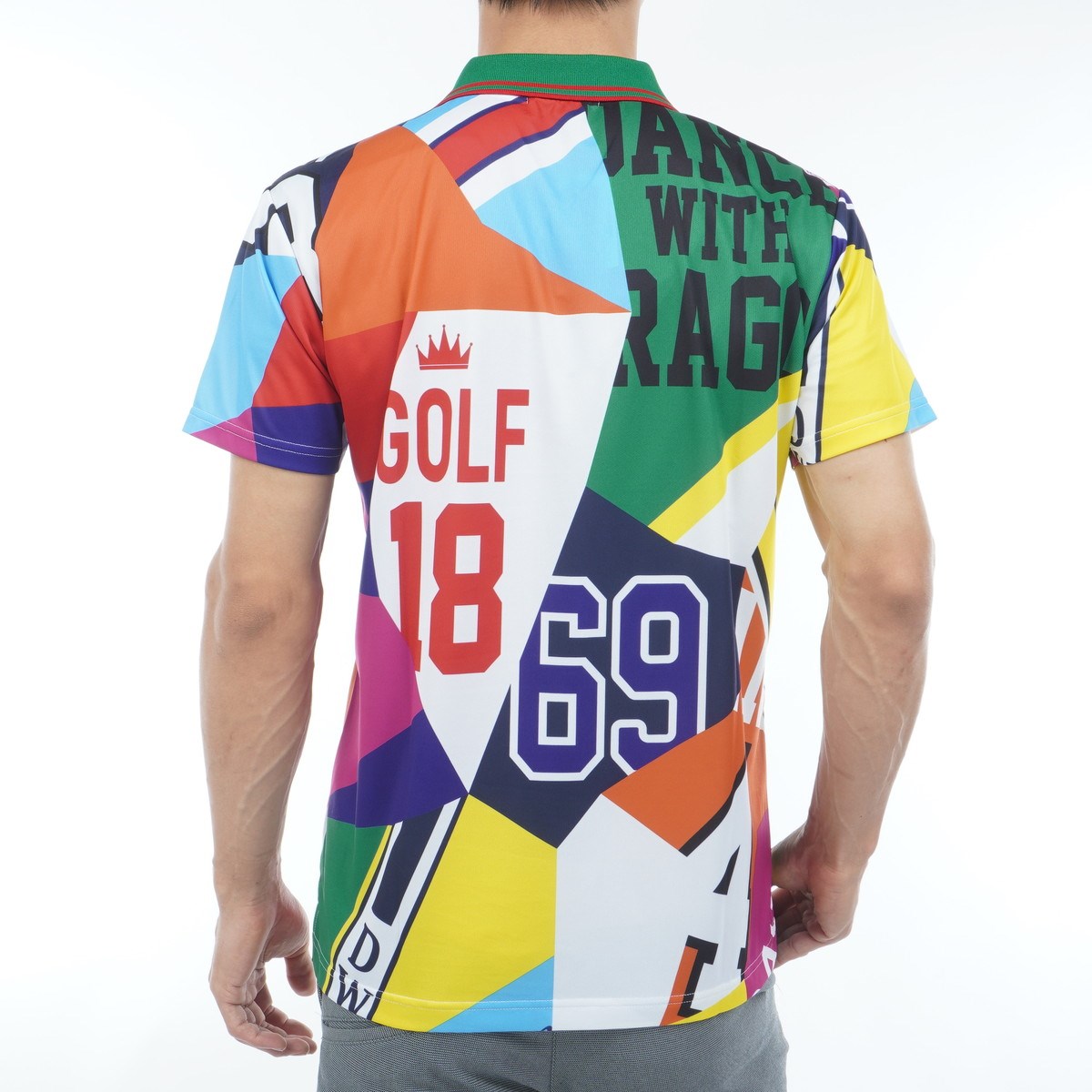 ダンスウィズドラゴン Dance With Dragon ストレッチ ブローグコアプリント 半袖ポロシャツ 04 マルチ 099