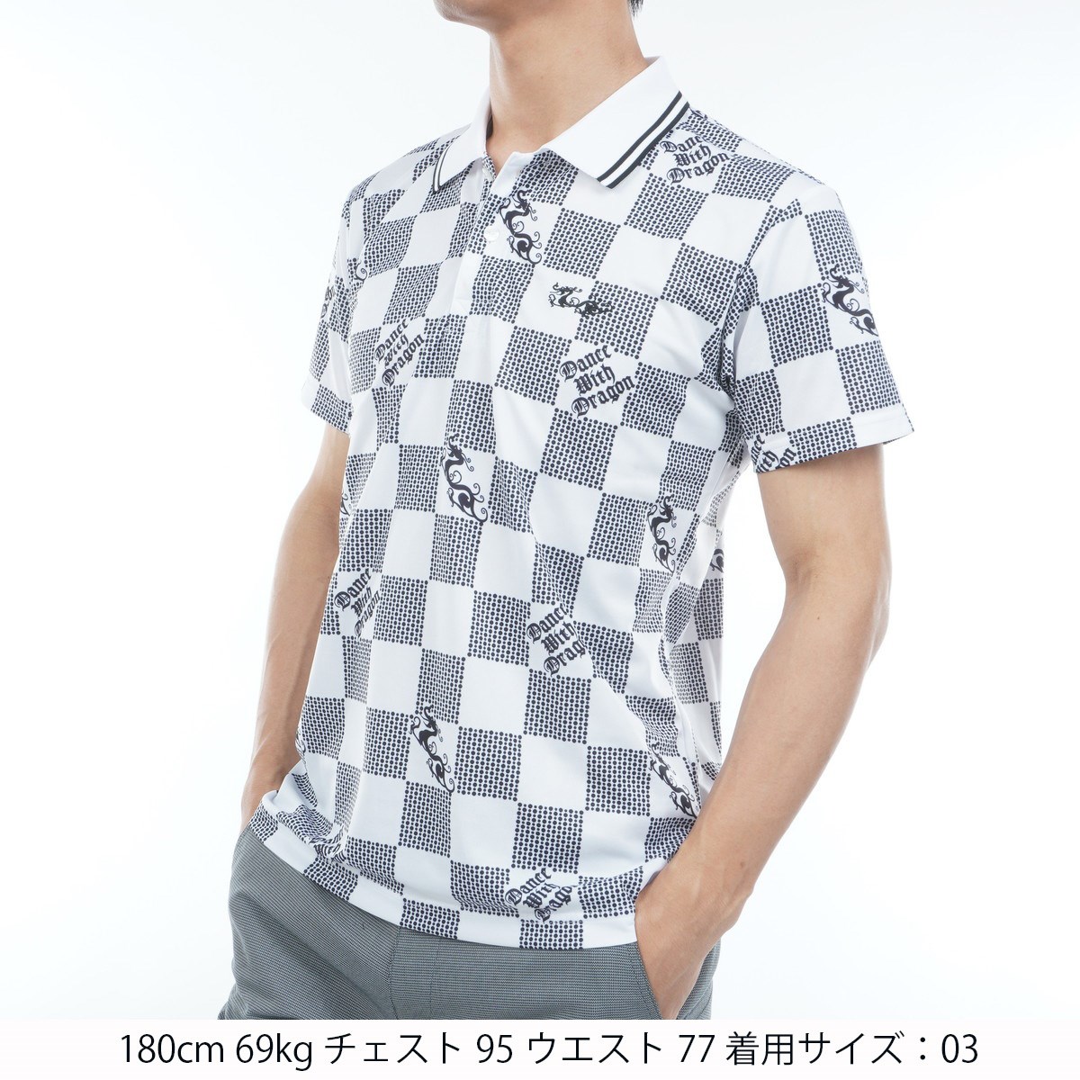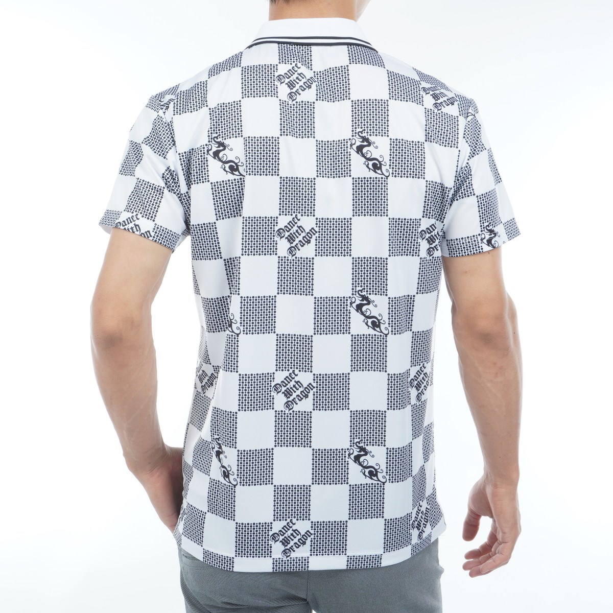 ダンスウィズドラゴン Dance With Dragon ストレッチ ブローグコアプリント 半袖ポロシャツ 04 ホワイト/ブラック 110