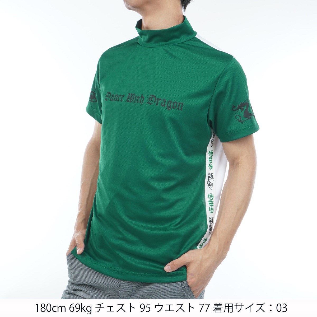 ダンスウィズドラゴン Dance With Dragon ストレッチ ドライクールマックス モックネック半袖シャツ 03 グリーン 045