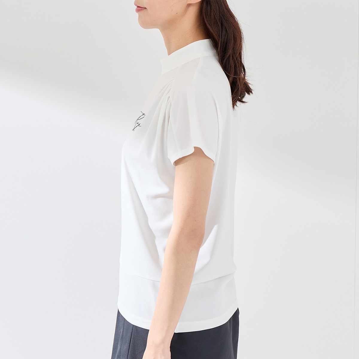 ジュン アンド ロペ JUN & ROPE 強撚スムースギャザー プルオーバー半袖シャツ L ホワイト 10 レディス