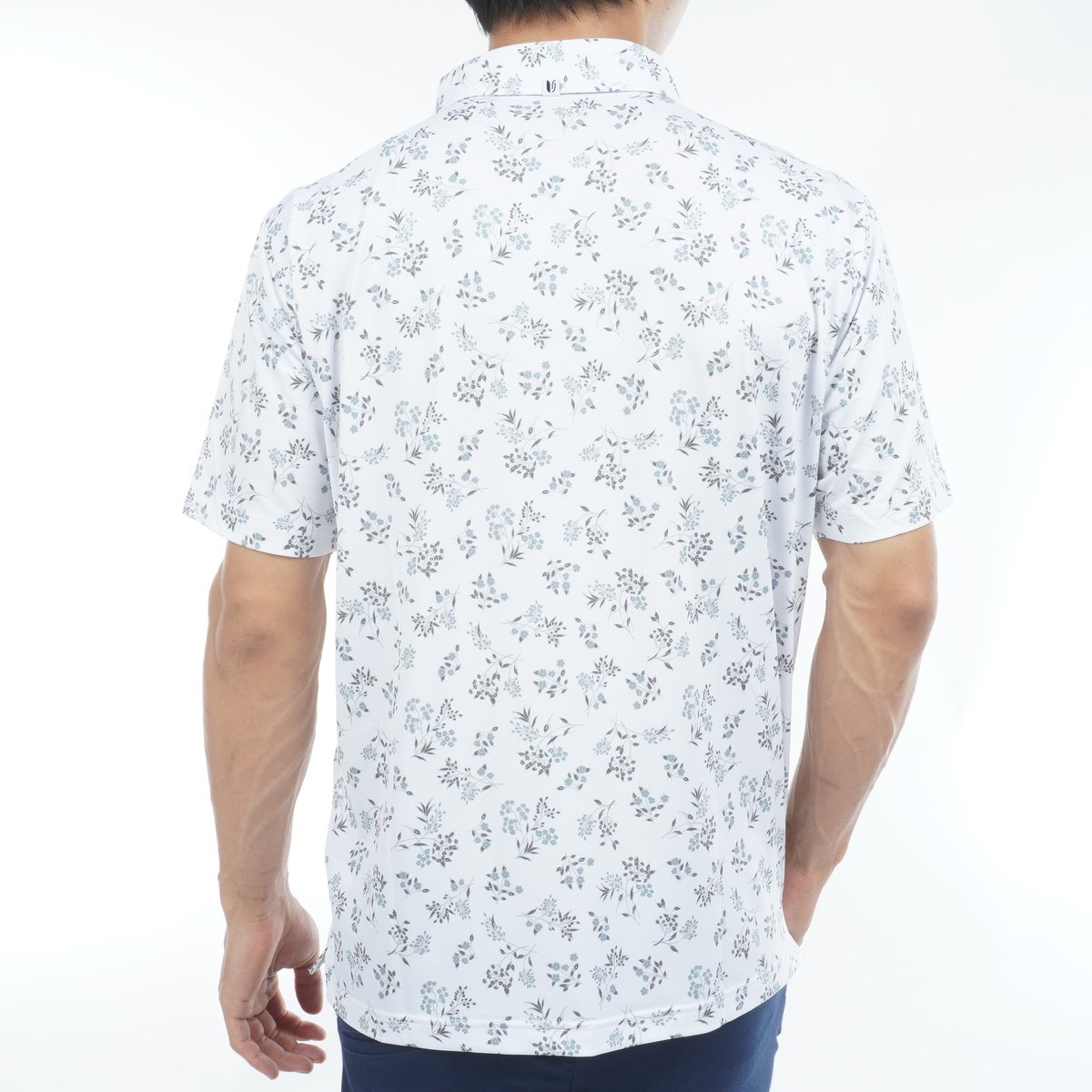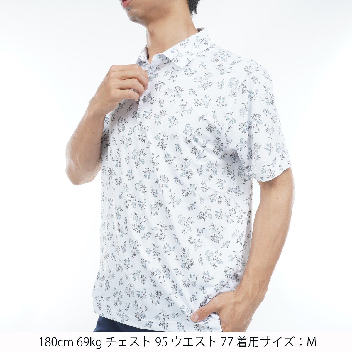 アザレア(つつじ)など小花柄がデザインされた半袖ポロシャツ。