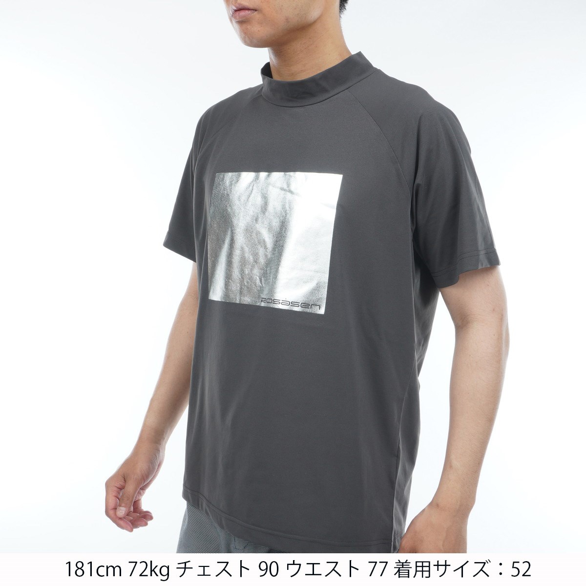 ロサーセン ROSASEN A-Line 箔プリントモックネック半袖シャツ 48 チャコール 18