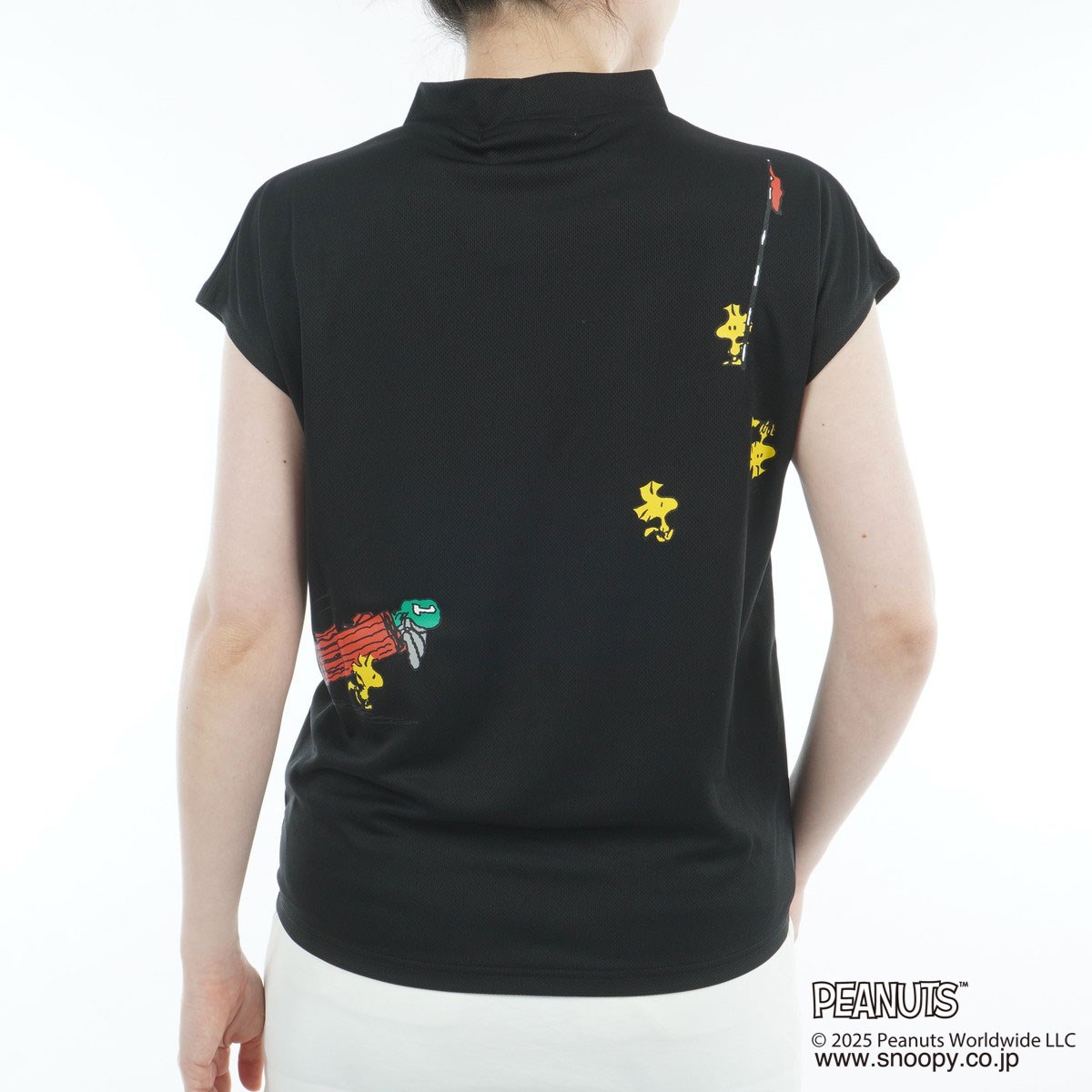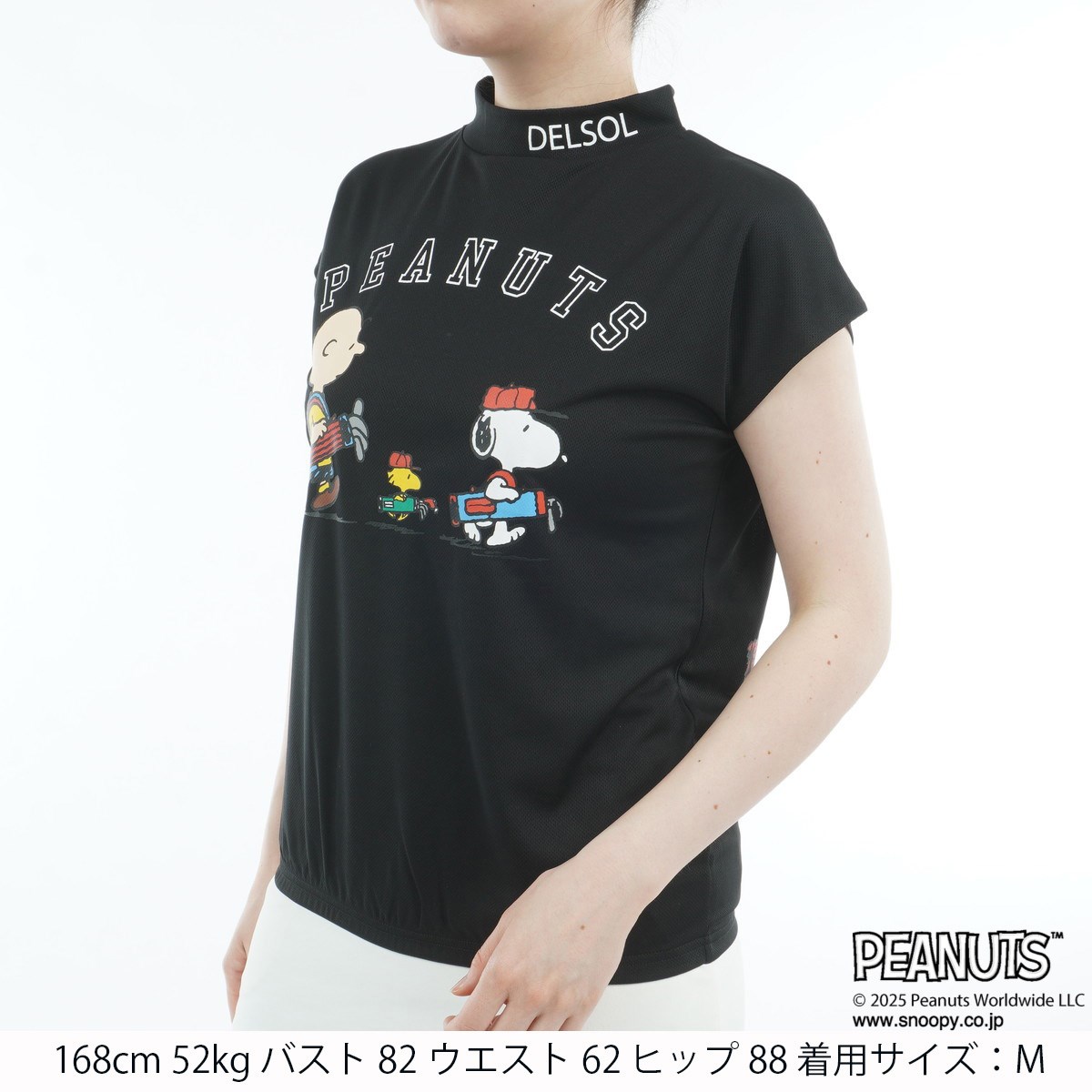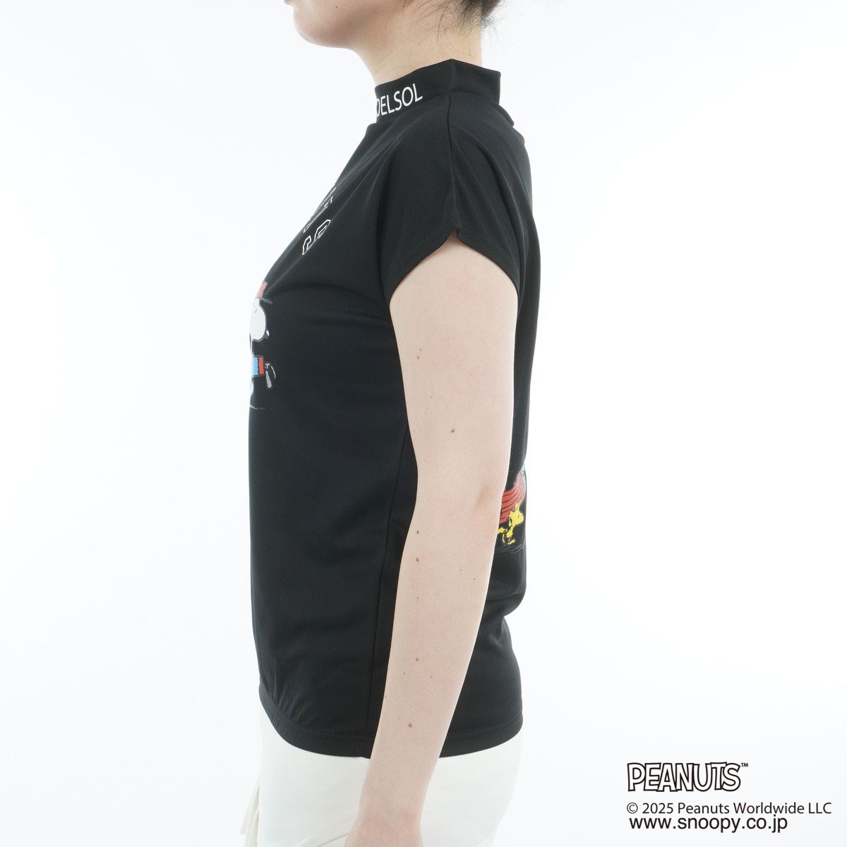 デルソルゴルフ DELSOL GOLF DELSOL×PEANUTS スヌーピーコラボ ストレッチ 裾ゴムフレンチスリーブ半袖シャツ LL ブラック レディス