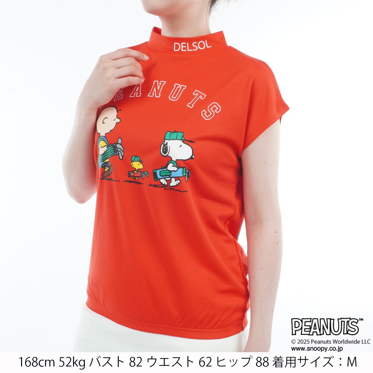 デルソルゴルフ DELSOL GOLF DELSOL×PEANUTS スヌーピーコラボ ストレッチ 裾ゴムフレンチスリーブ半袖シャツ 3L レッド レディス