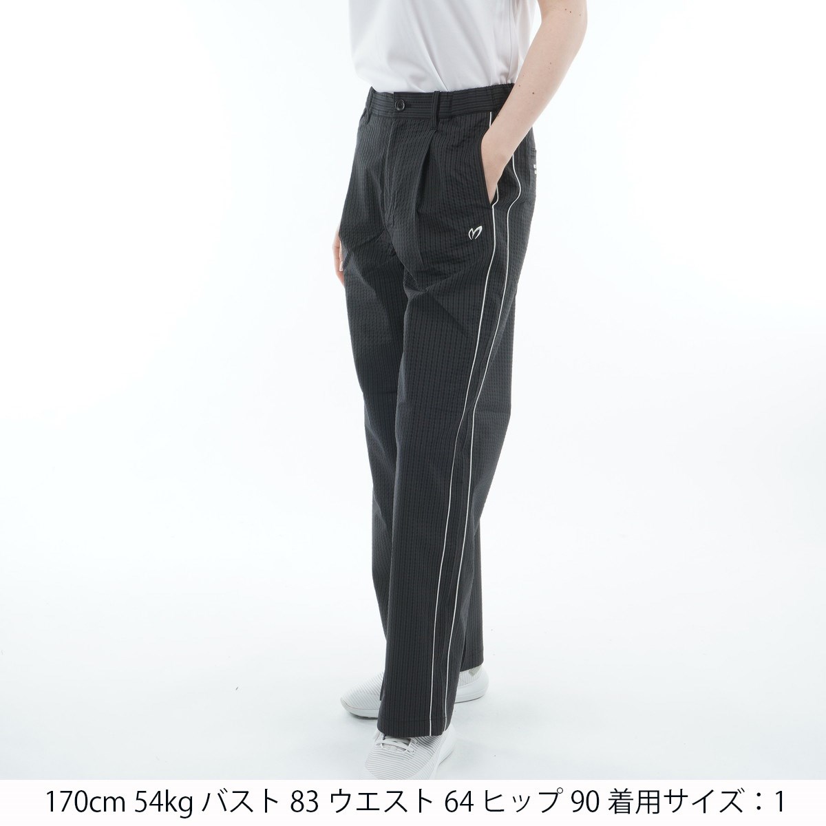 少しワイドめなトレンドのシルエットで美脚効果も期待できる、ゴルフからデイリーまで幅広いシーンで活用する事ができる汎用性の高い一本です。