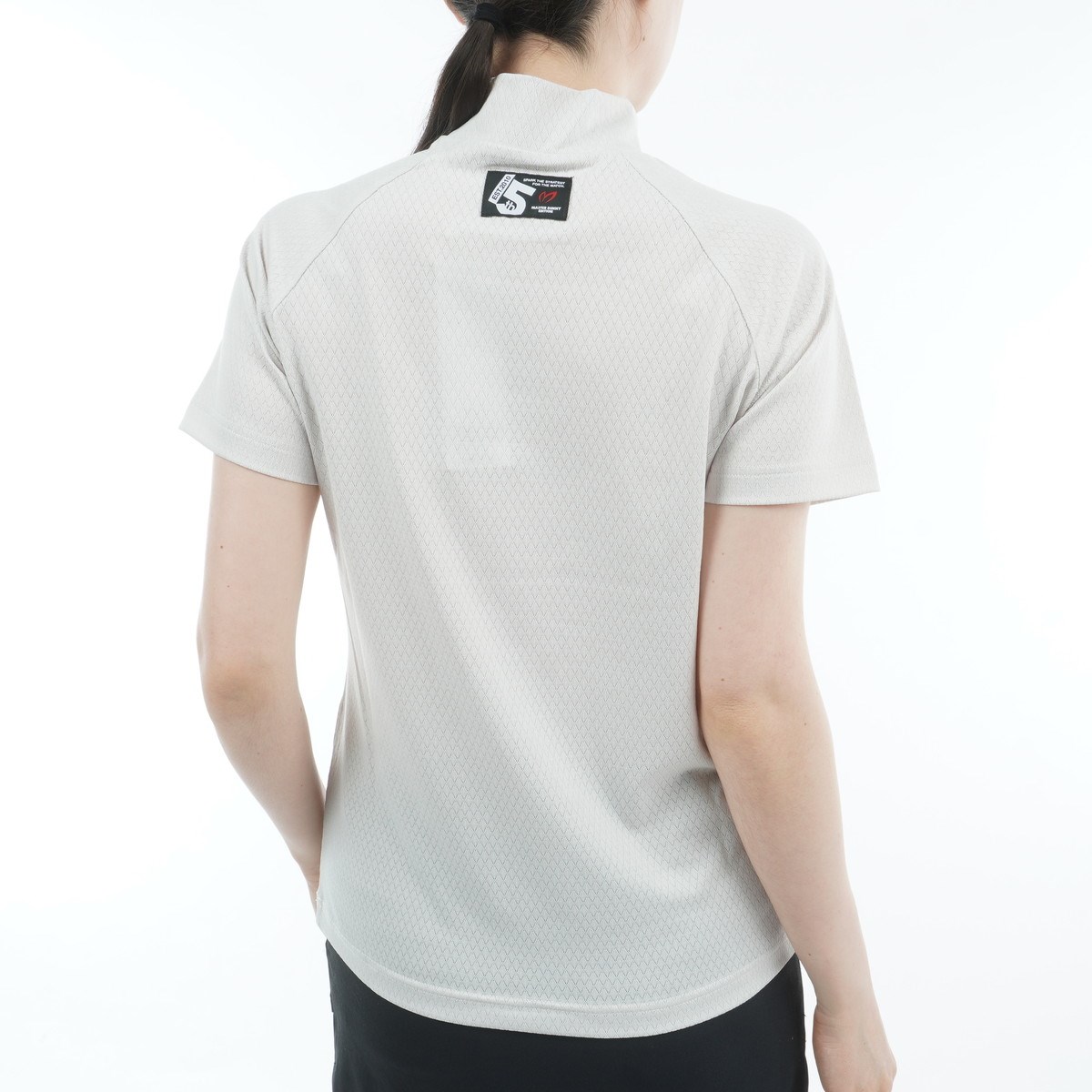 動きやすくドライタッチな清涼感のある夏向きの素材を使用した、ダイヤベアジャガード半袖モックネックシャツ。