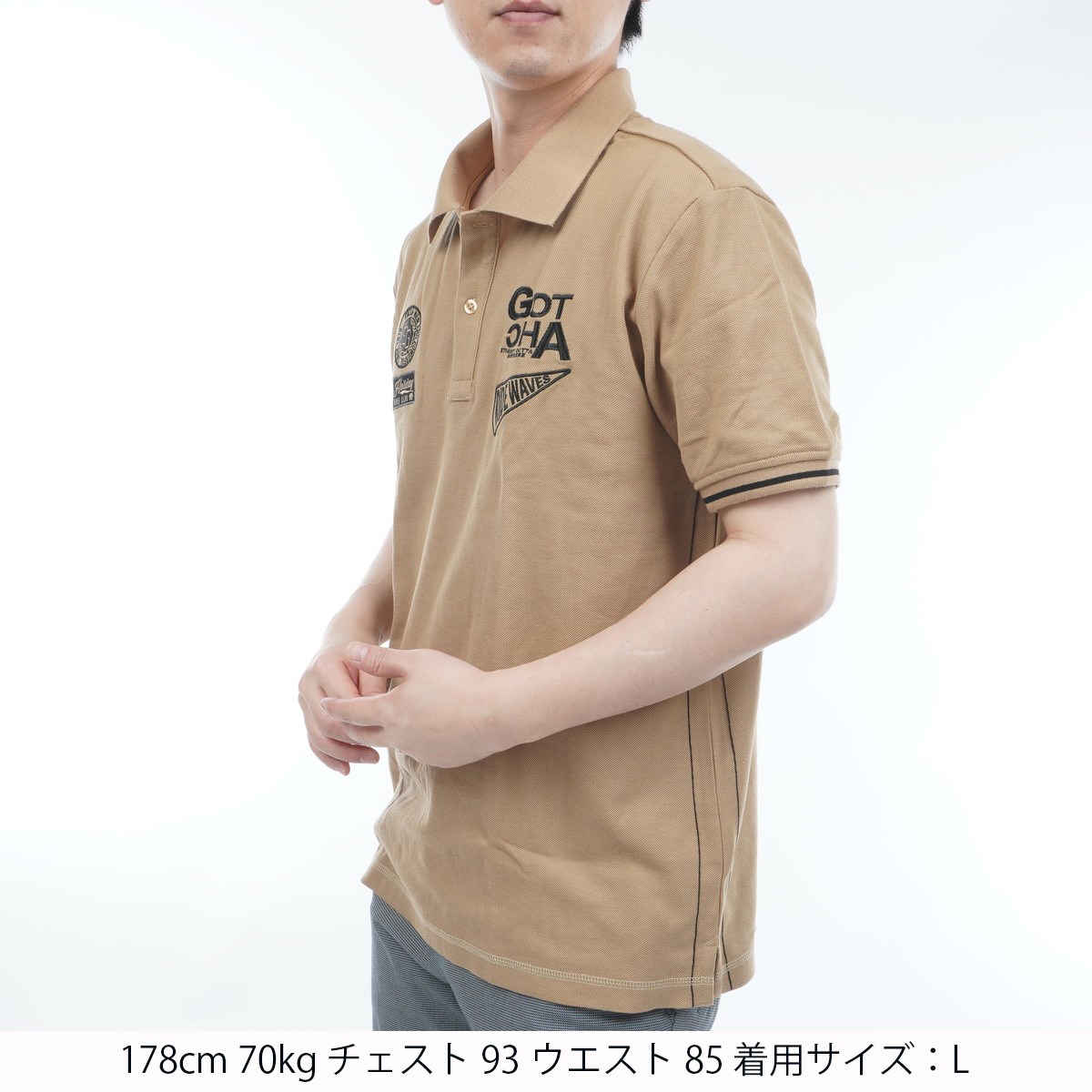 ガッチャゴルフ GOTCHA GOLF 鹿の子ワッペン 半袖ポロシャツ M ベージュ 022