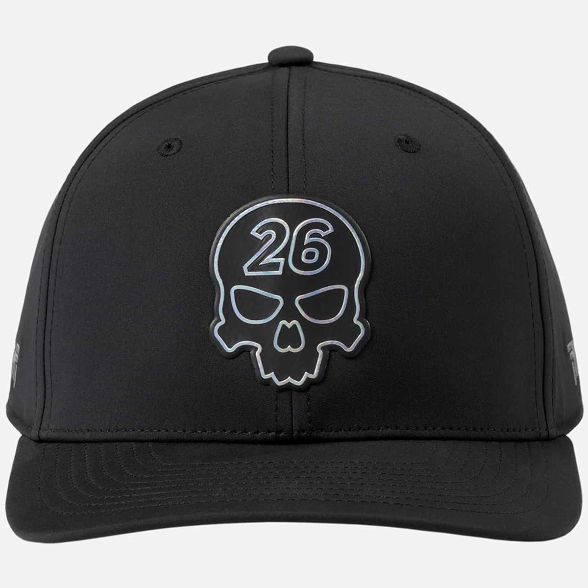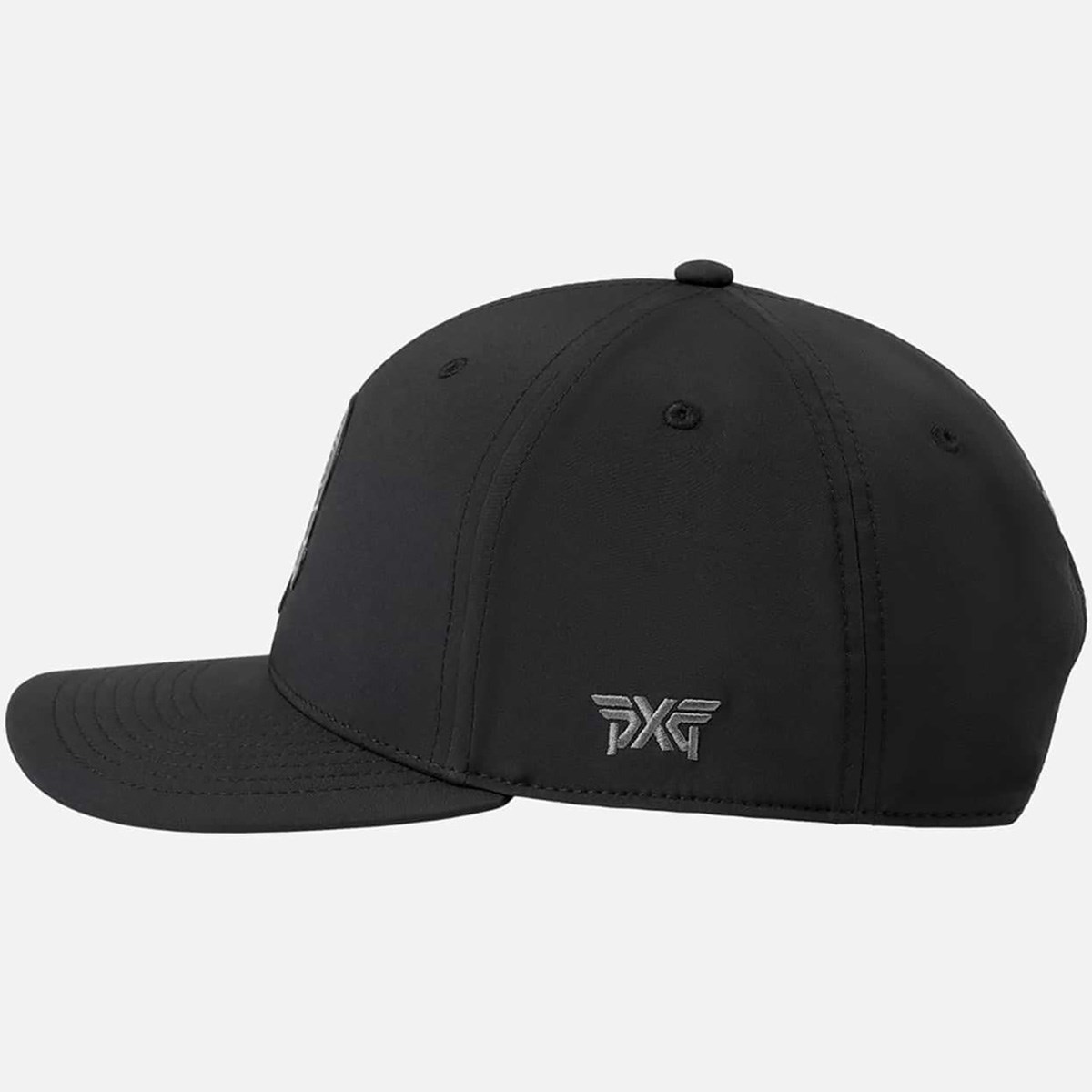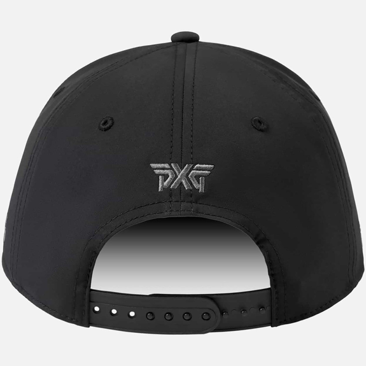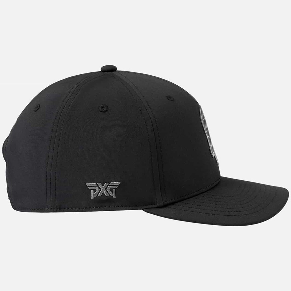 シルバーで縁取られたDarkness26スカル、少しカーブしたビル、サイドとバックのPXGロゴ、スナップバッククロージャーが特徴です。