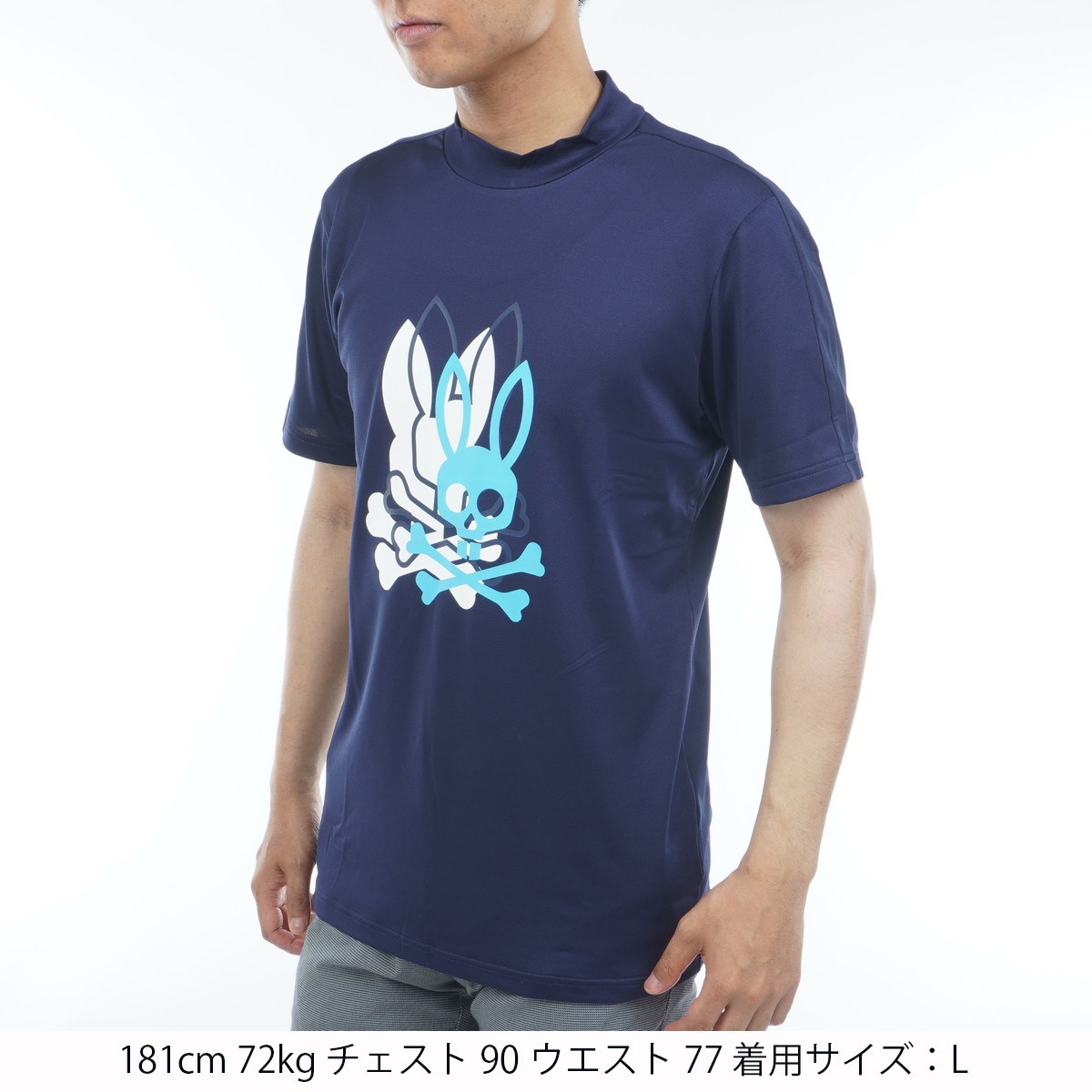 サイコバニー PSYCHO BUNNY GOLF 3レイヤーバニー モックネック半袖Tシャツ L ネイビー