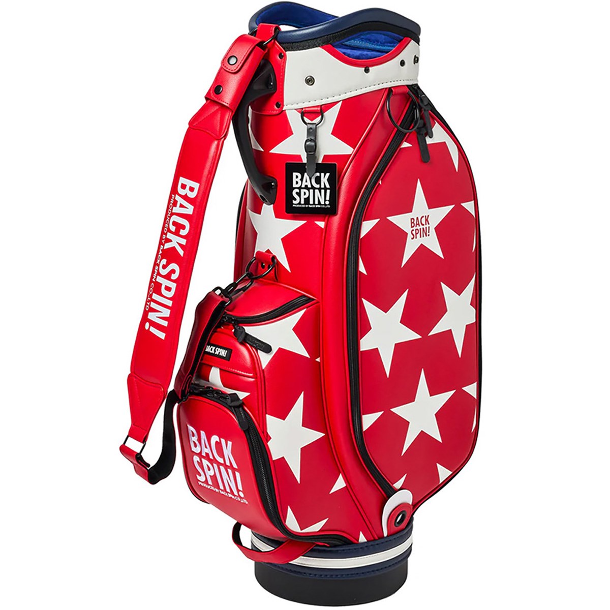 日本での品質検査に合格したオリジナル合成皮革生地に大柄な星を大胆にプリントしたキャディバッグ。
