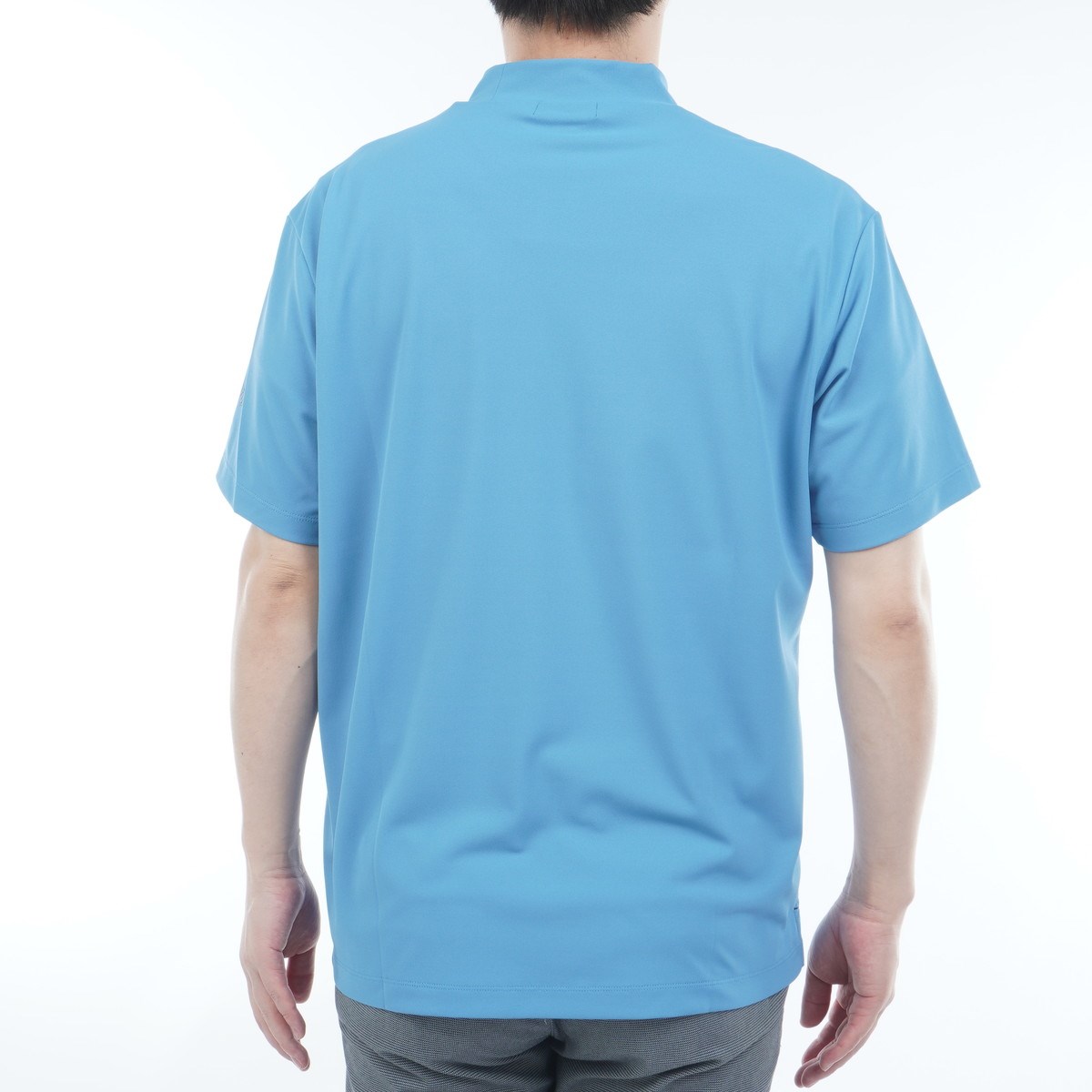 左胸に2025年秋冬シーズンの新しいロゴがプリントされたモックネック半袖シャツです。