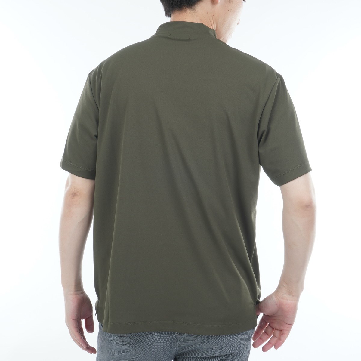 左胸に2025年秋冬シーズンの新しいロゴがプリントされたモックネック半袖シャツです。