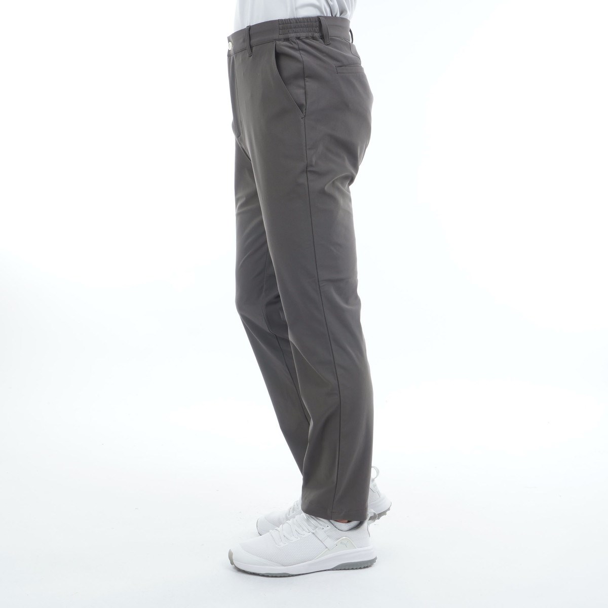 太ももから裾にかけてゆるやかにテーパードを利かせ、過度に細くなりすぎず、けれどすっきりとした見た目の美脚シルエットなパンツに仕上がっています。