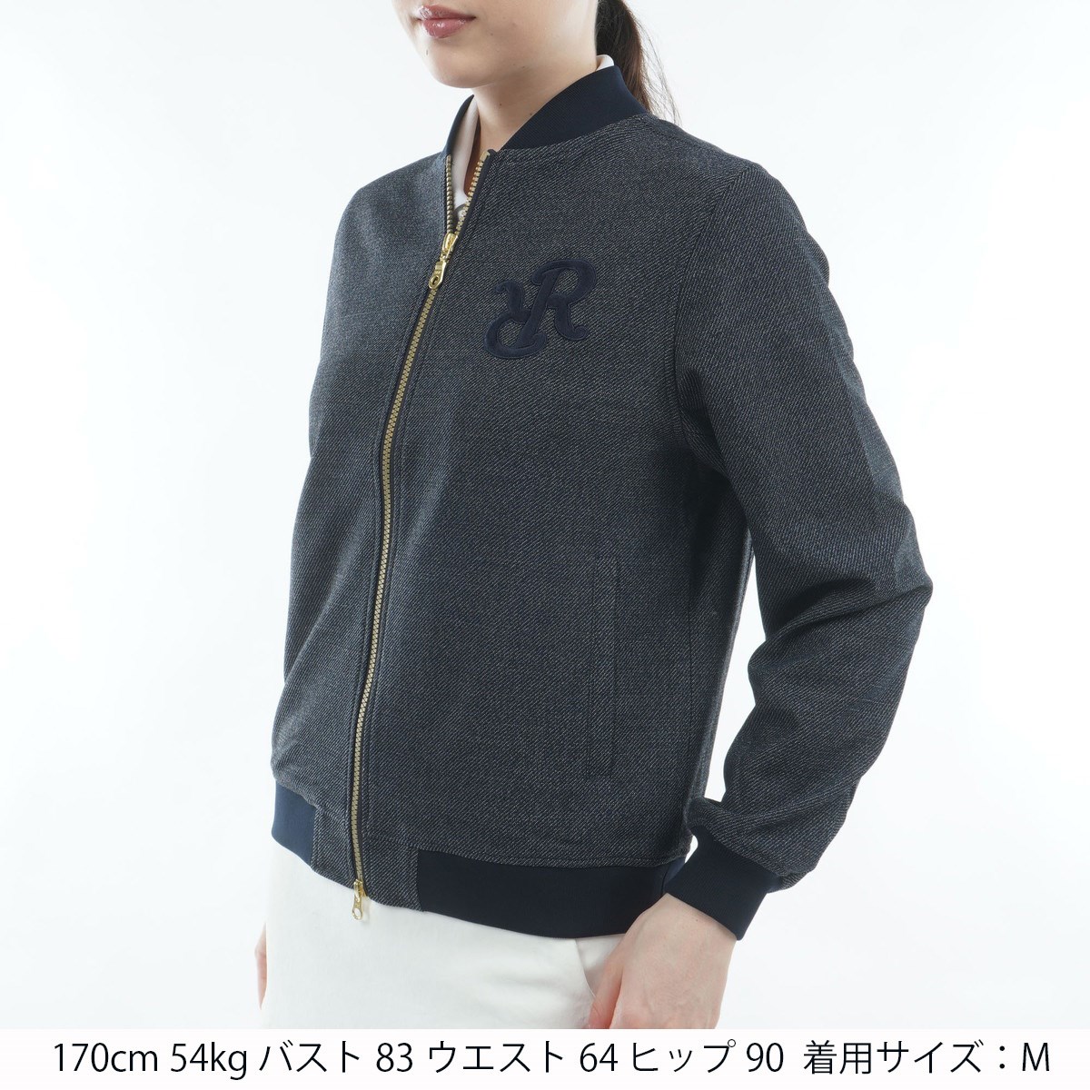 ゴールドファスナーや同色のリブ配色など、細部にまでこだわった仕立てが洗練された大人の佇まいを演出します。