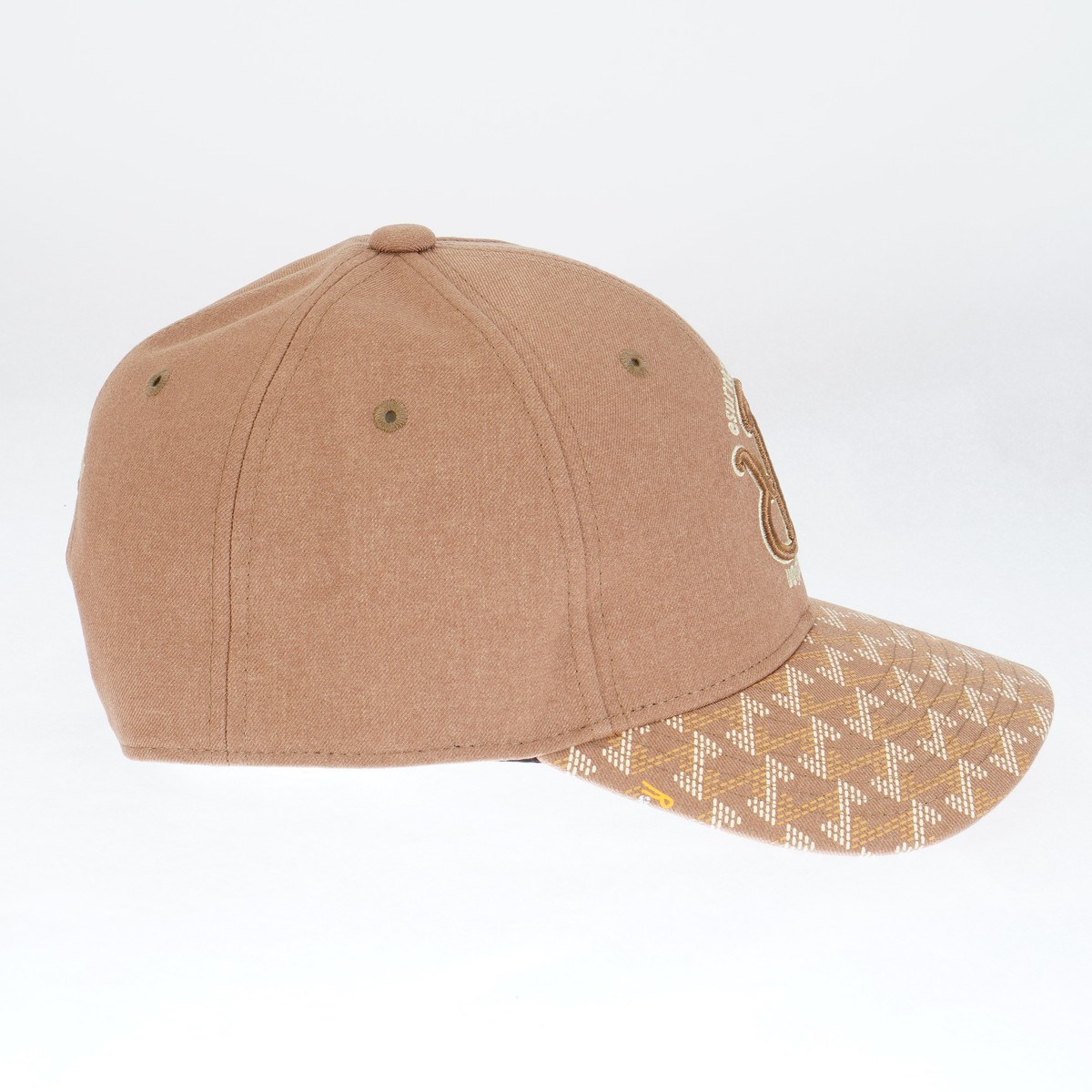 ツバ部分への幾何学模様が特徴的でほど良い主張感。