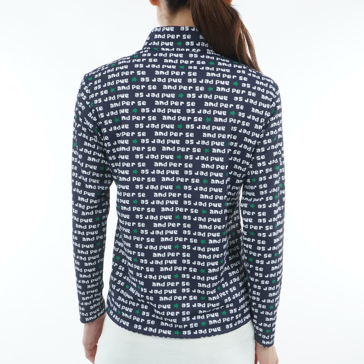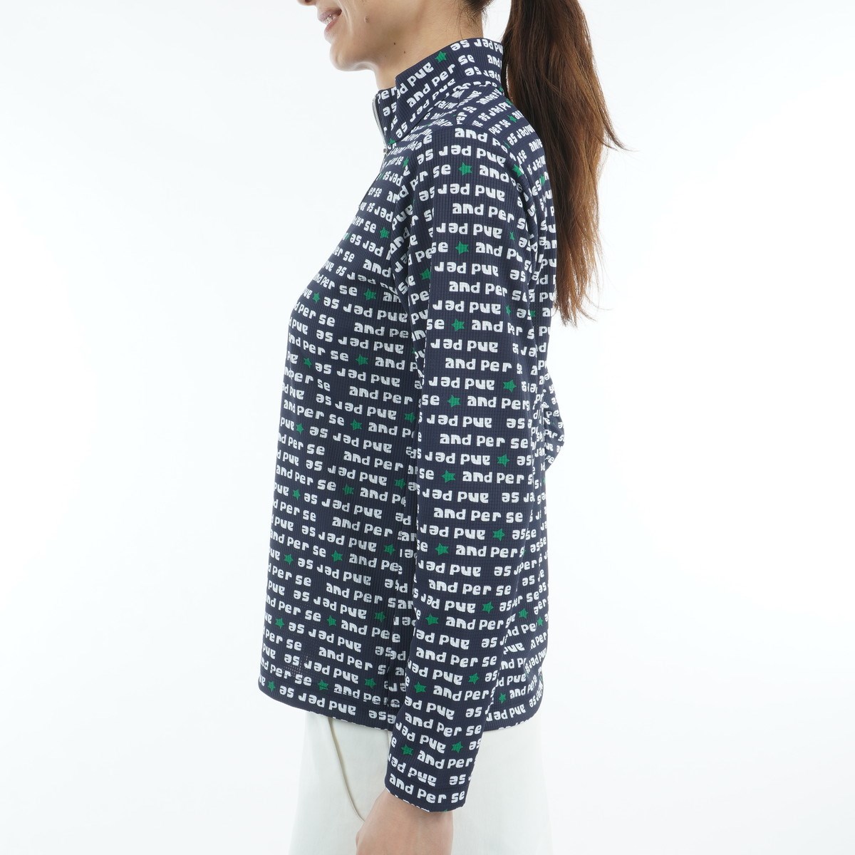 アンパスィ and per se ストレッチ ソルケアドットプリンテッド ハーフジップ長袖シャツ M ネイビー レディス