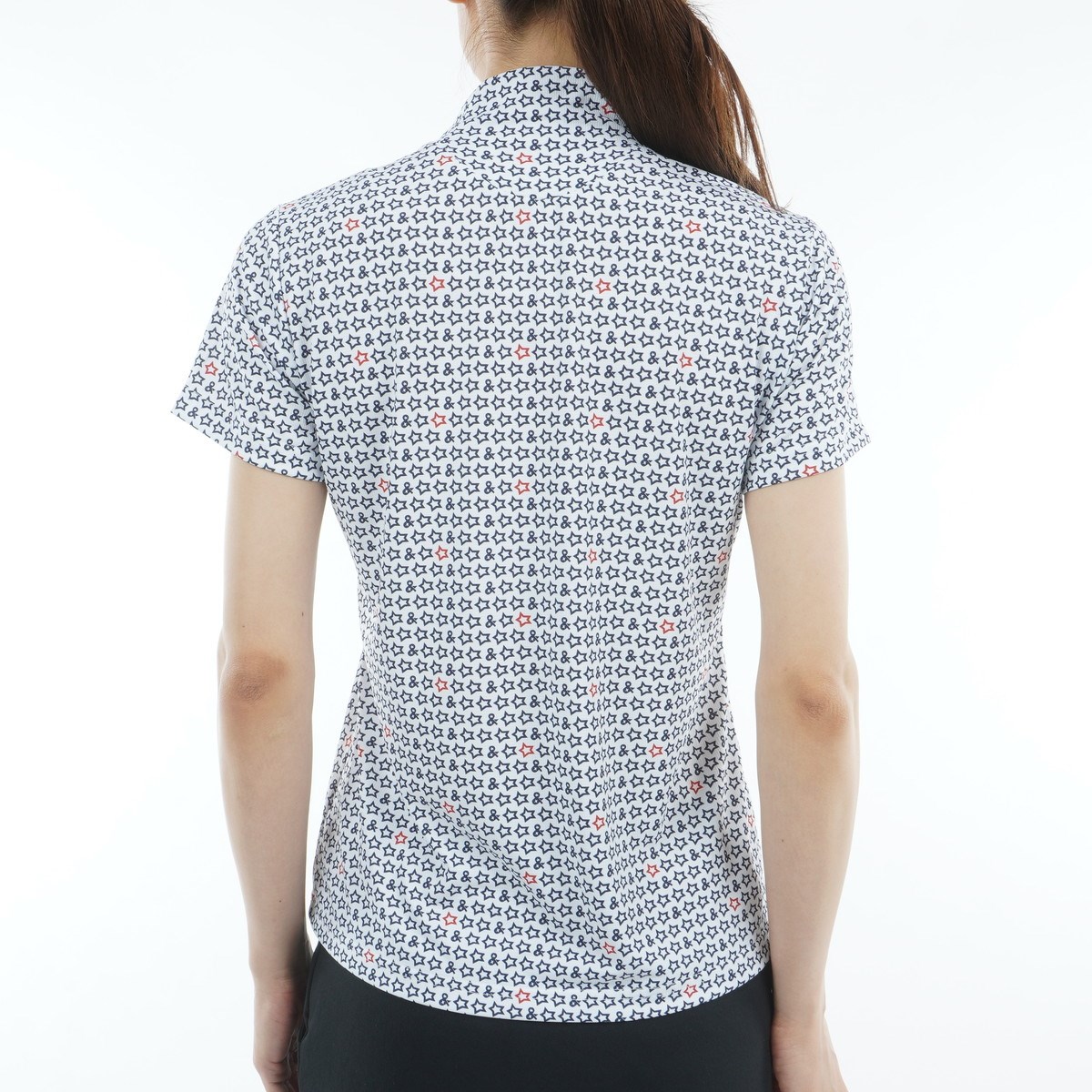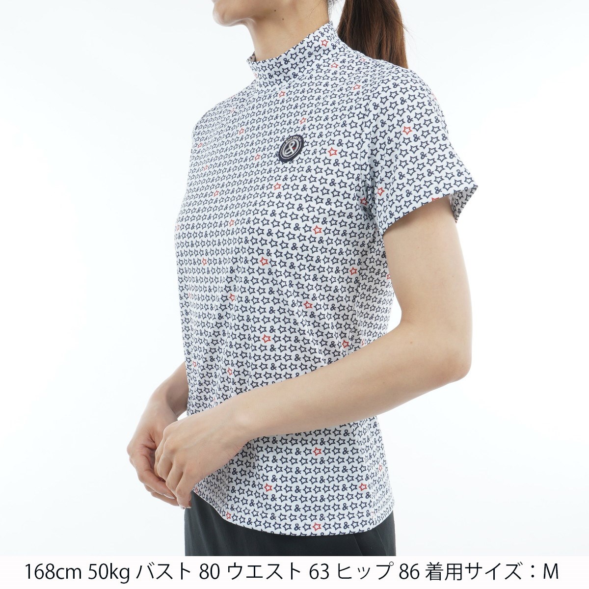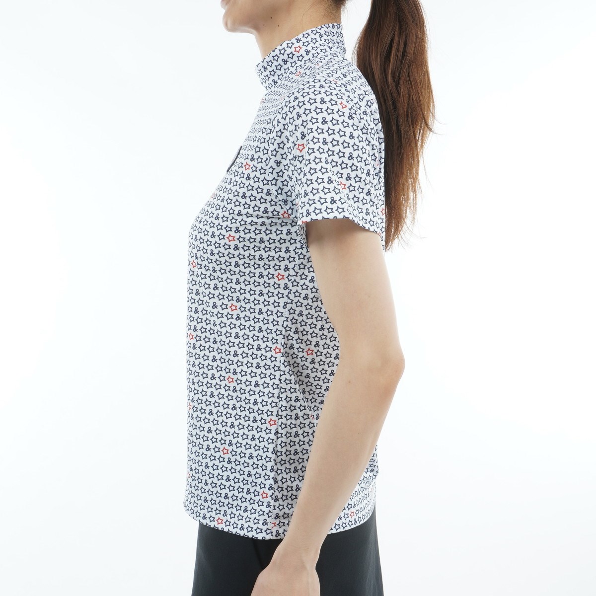 アンパスィ and per se ストレッチ ソルケア3Dプリンテッド モックネック半袖シャツ M ホワイト レディス