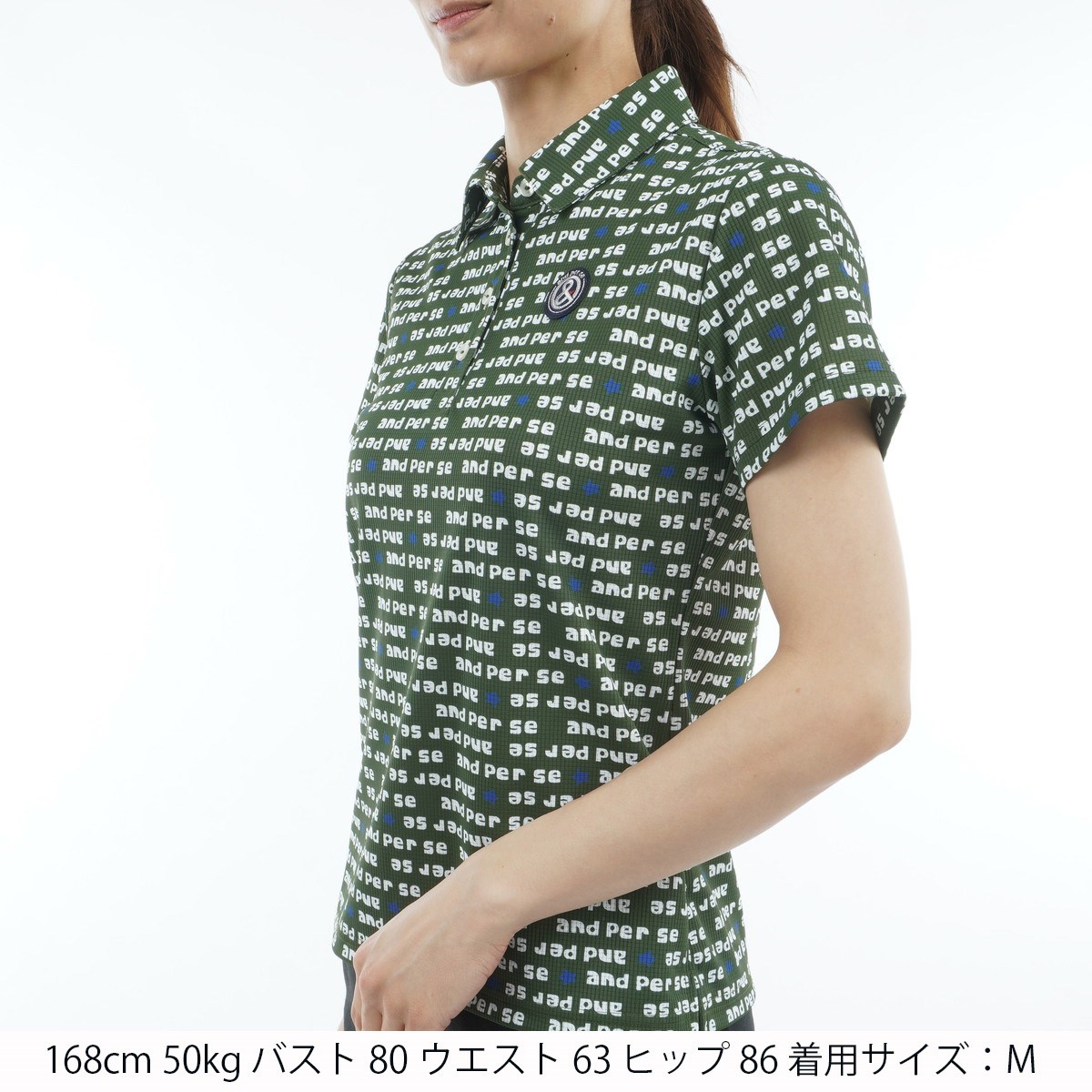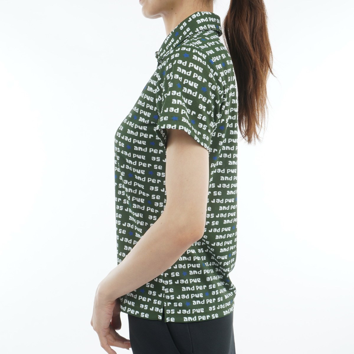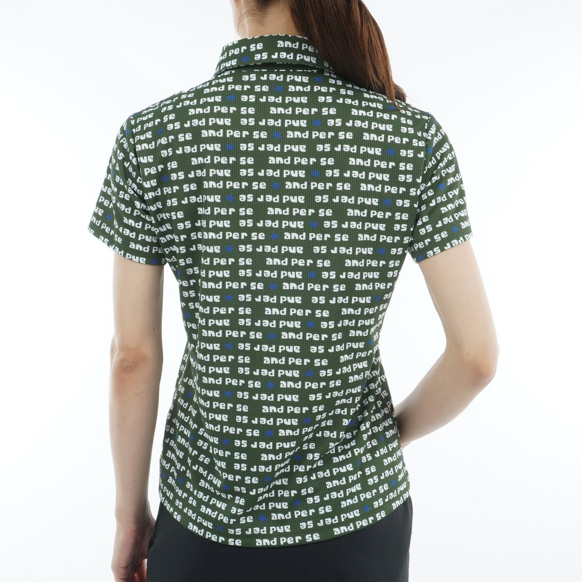 アンパスィ and per se ストレッチ ソルケアドットプリンテッド半袖ポロシャツ LL カーキ レディス