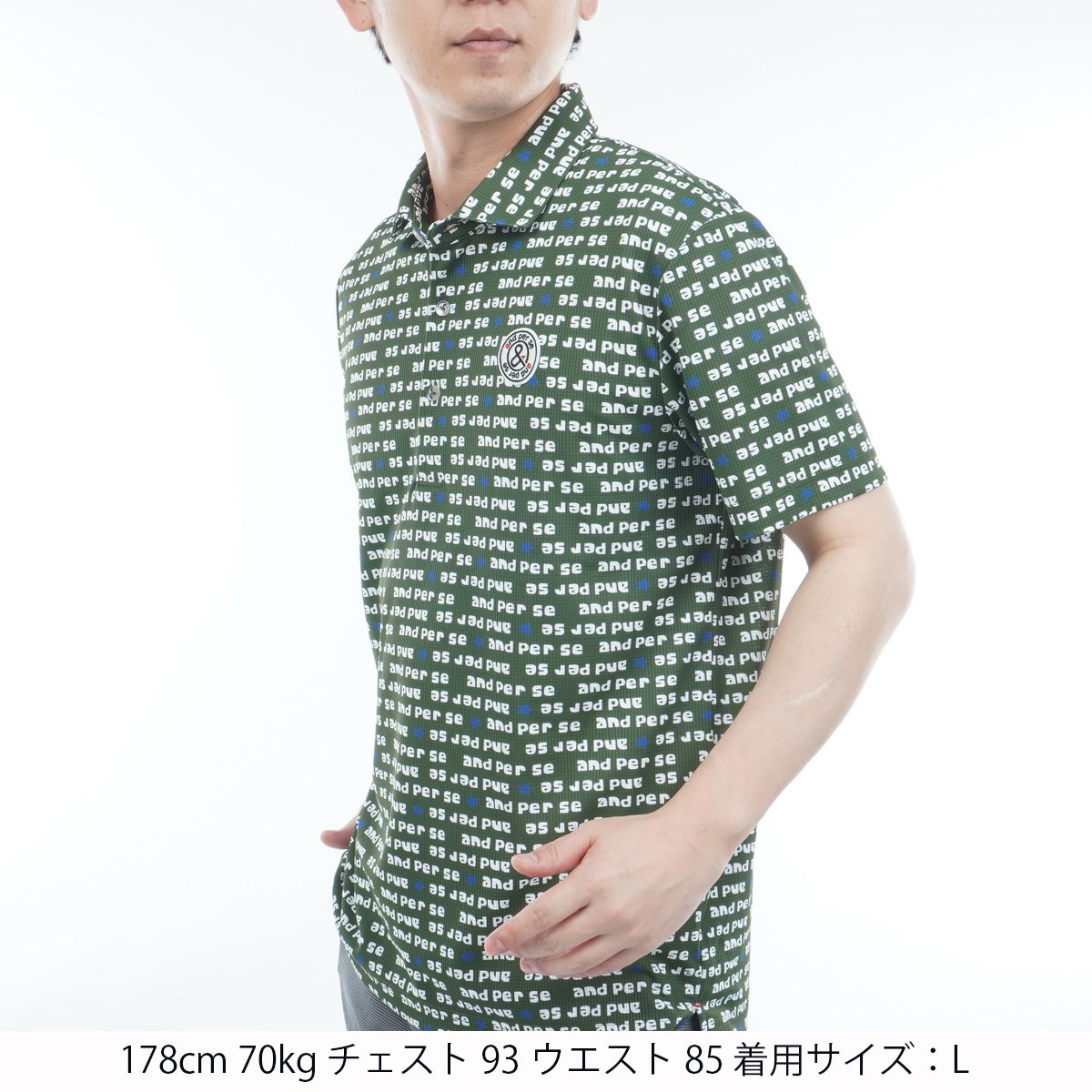 アンパスィ and per se ストレッチ ソルケアドットプリンテッド半袖ポロシャツ LL カーキ