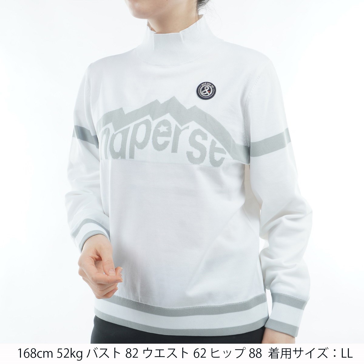 アンパスィ and per se ストレッチ ウインドシャッター袖防風ハイネックセーター LL ホワイト レディス