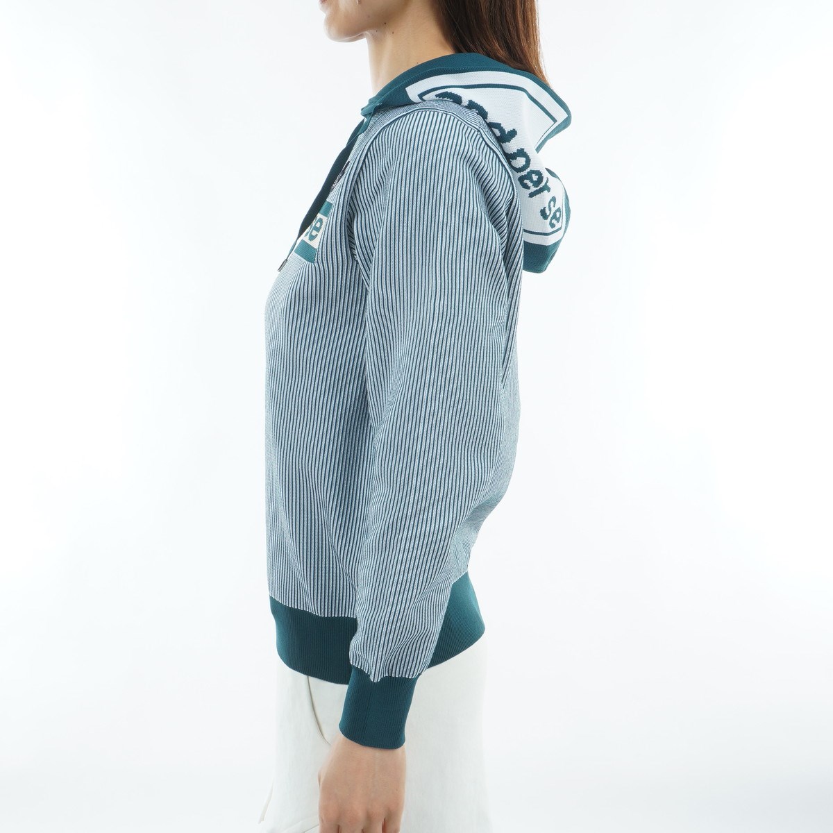 編地で表現されたストライプ柄が魅力の軽量ニット・パーカー。