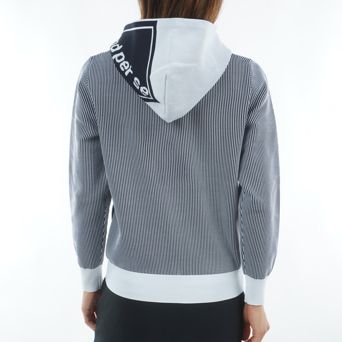 編地で表現されたストライプ柄が魅力の軽量ニット・パーカー。