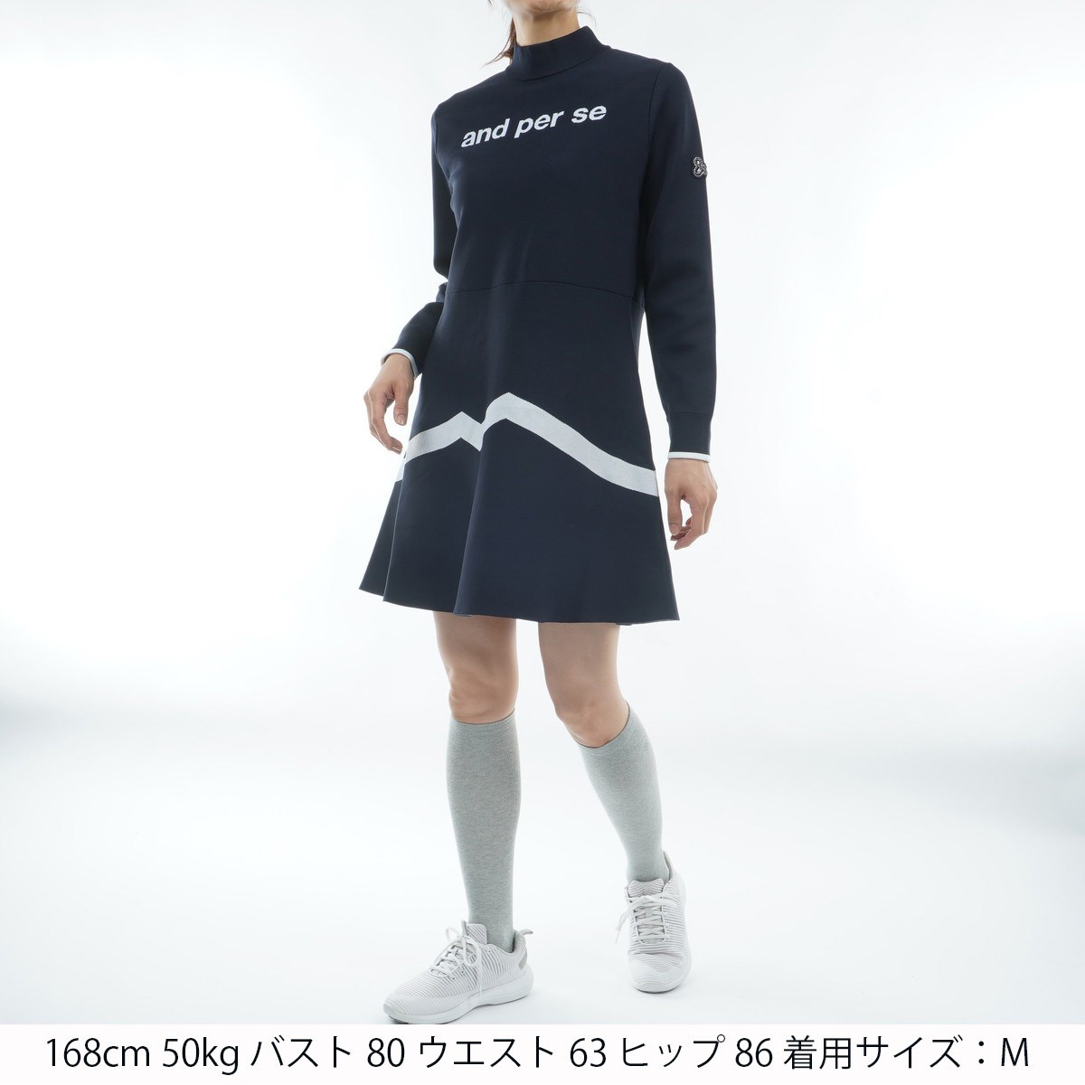 アンパスィ and per se ストレッチ ライトハイゲージ アクティブニットワンピース LL ネイビー レディス