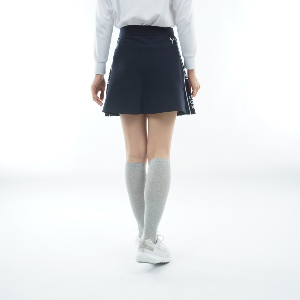 ジャカードタイプの二重編み組織で仕上げ、裾の翻りが起きにくい始末を施しています。