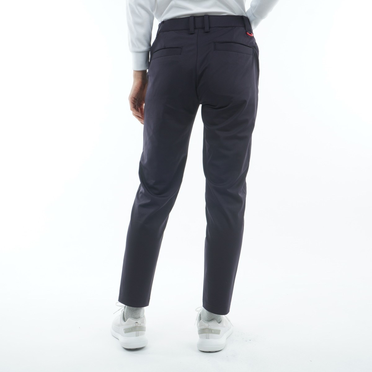 ベルト下部分の脇線をフロントへ移動させたパターン設計により、ポケットの出し入れのしやすさを高めるとともに、脚細に感じる視覚効果を狙っています。