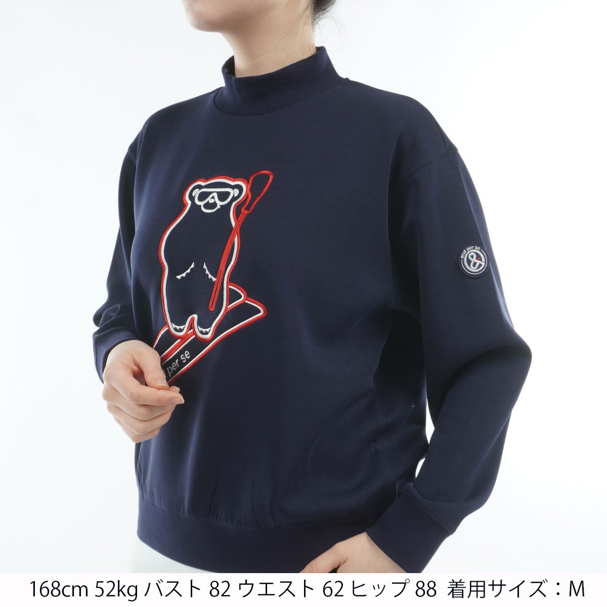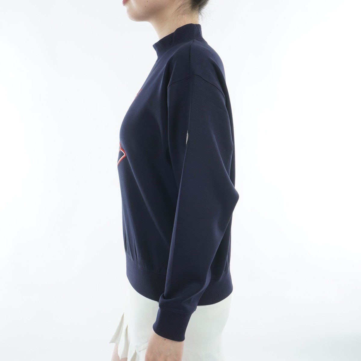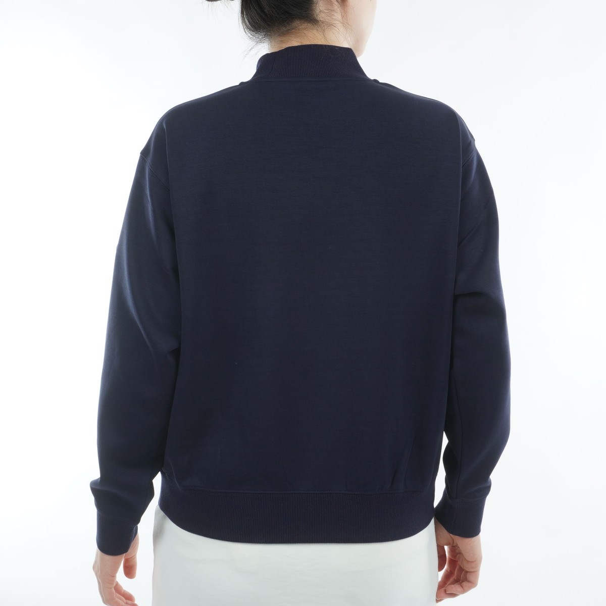 冬場のラウンドを意識した、程よいフィット感のリブ使いモックネックを採用しています。