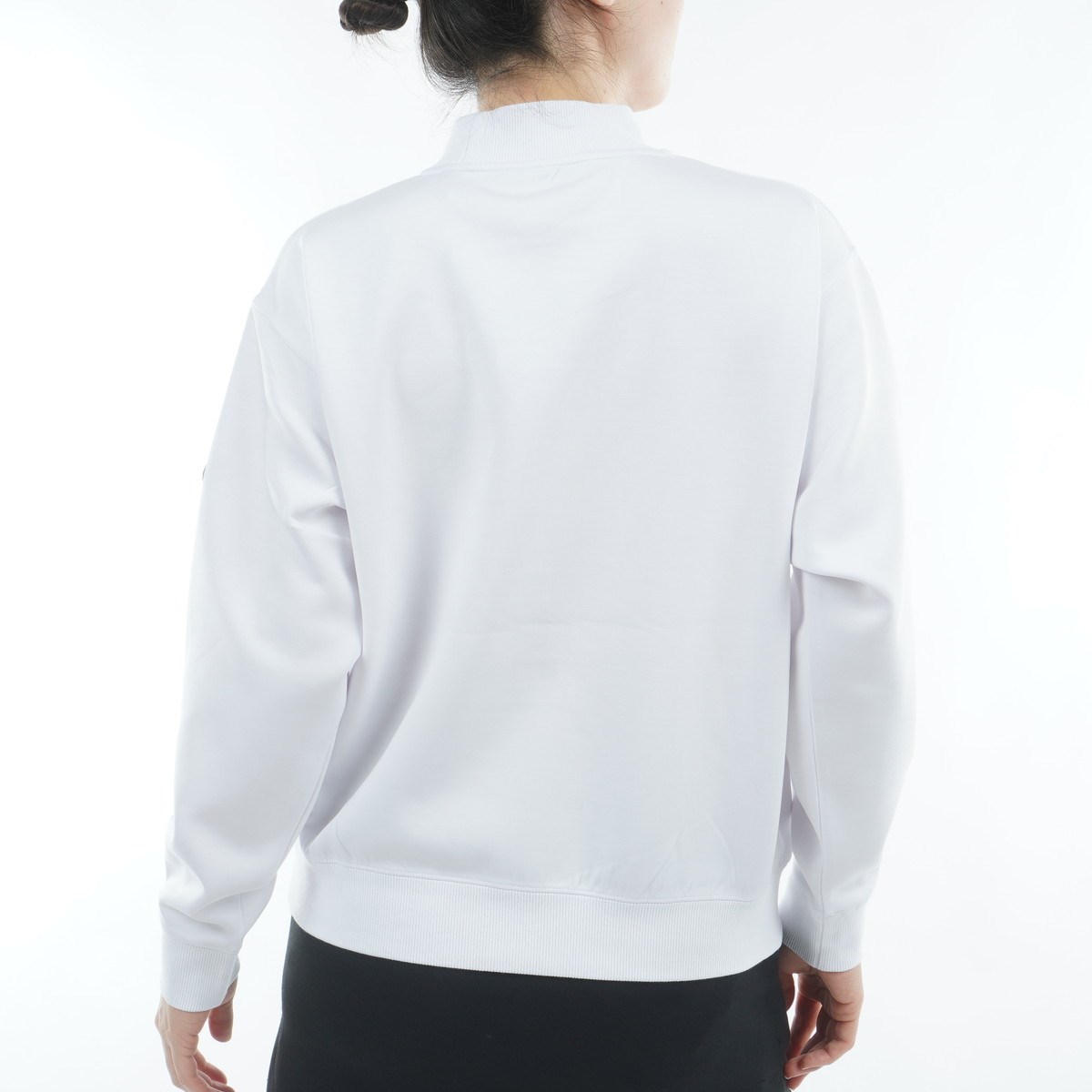 冬場のラウンドを意識した、程よいフィット感のリブ使いモックネックを採用しています。